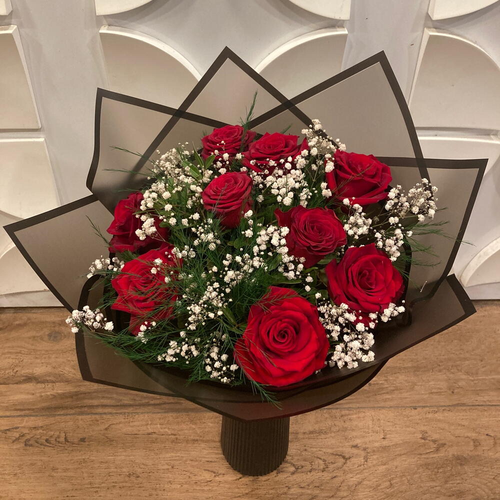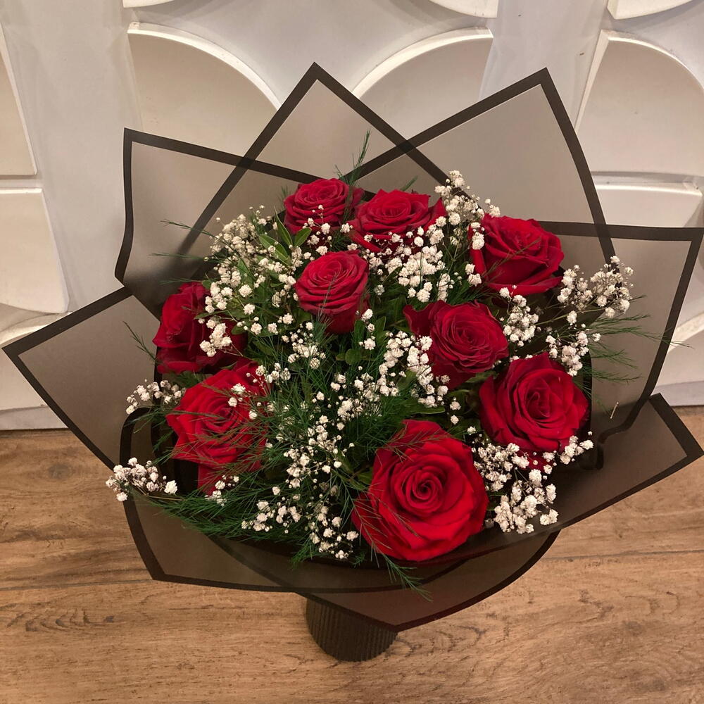 9 lu kırmızı gul buketi