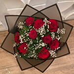 kırmızı gül - 9 adet yeşillik ve cipso - 15 adet