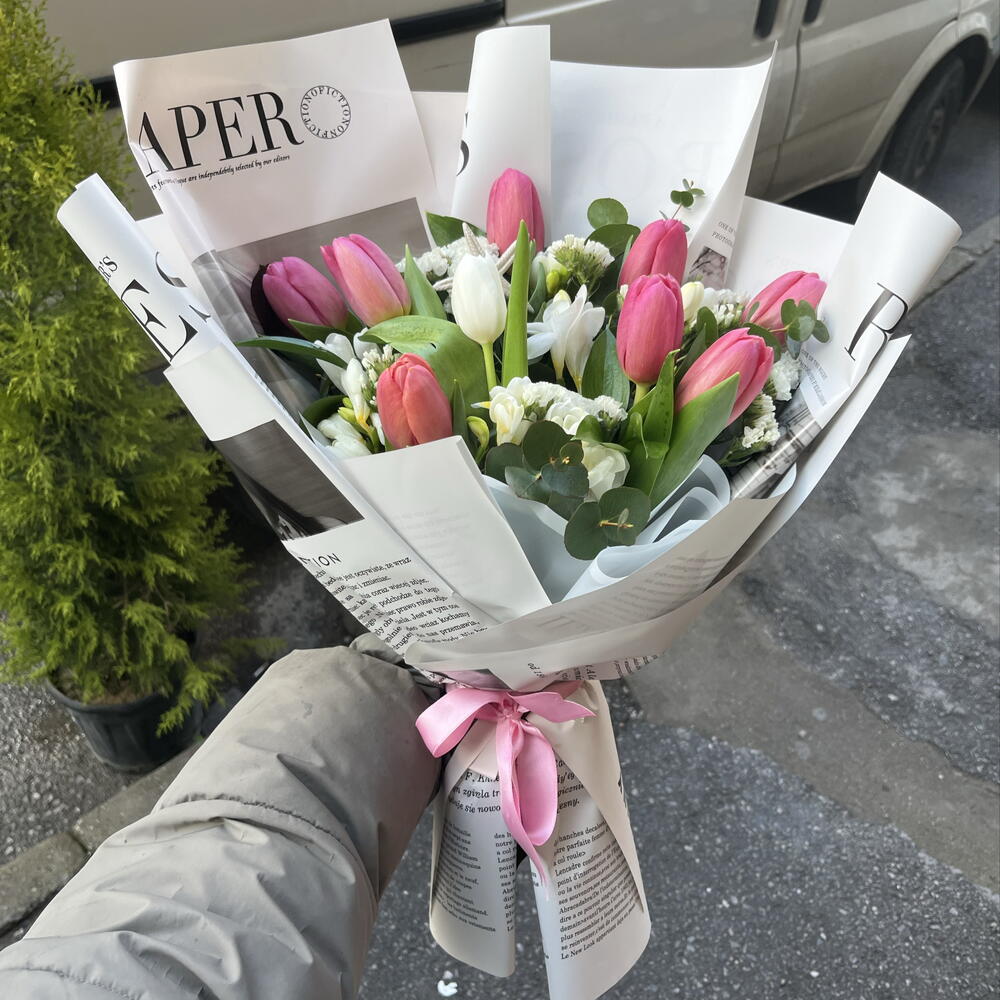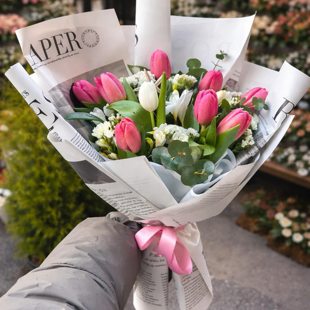 💐 8 adet pembe lale ve 1 adet beyaz lalenin zarif uyumuyla hazırlanan bu özel buket, romantik ve modern bir görünüm sunar. Deniz yıldızı detayı ile farklı ve dikkat çekici bir dokunuş kazanan tasarım; sevdiklerinize anlamlı ve şık bir hediye alternatifi olur. 🌿 Taze ve özenle hazırlanan bu buket; doğum günü, sürpriz ve özel anlar için ideal, sade ama etkileyici bir seçimdir.