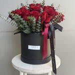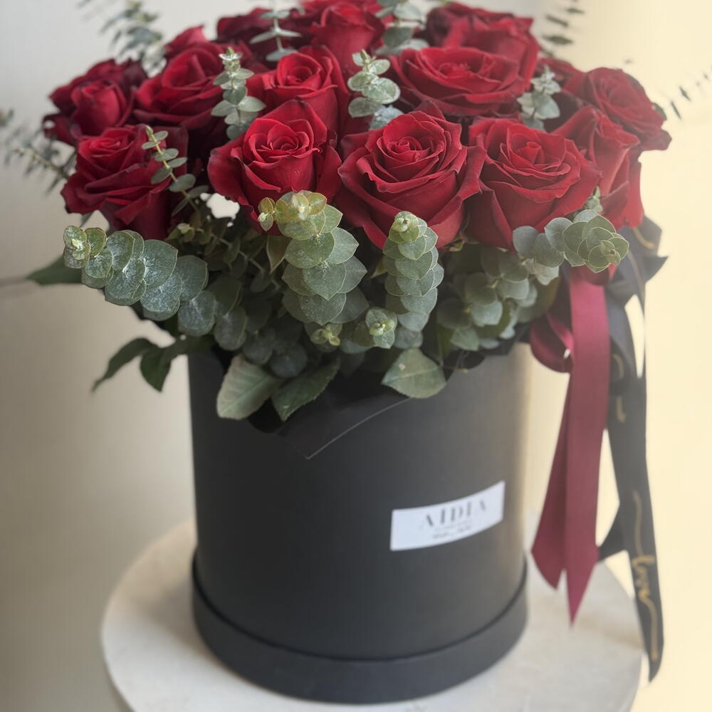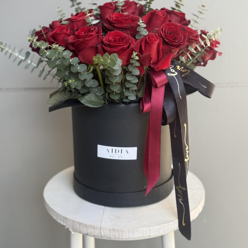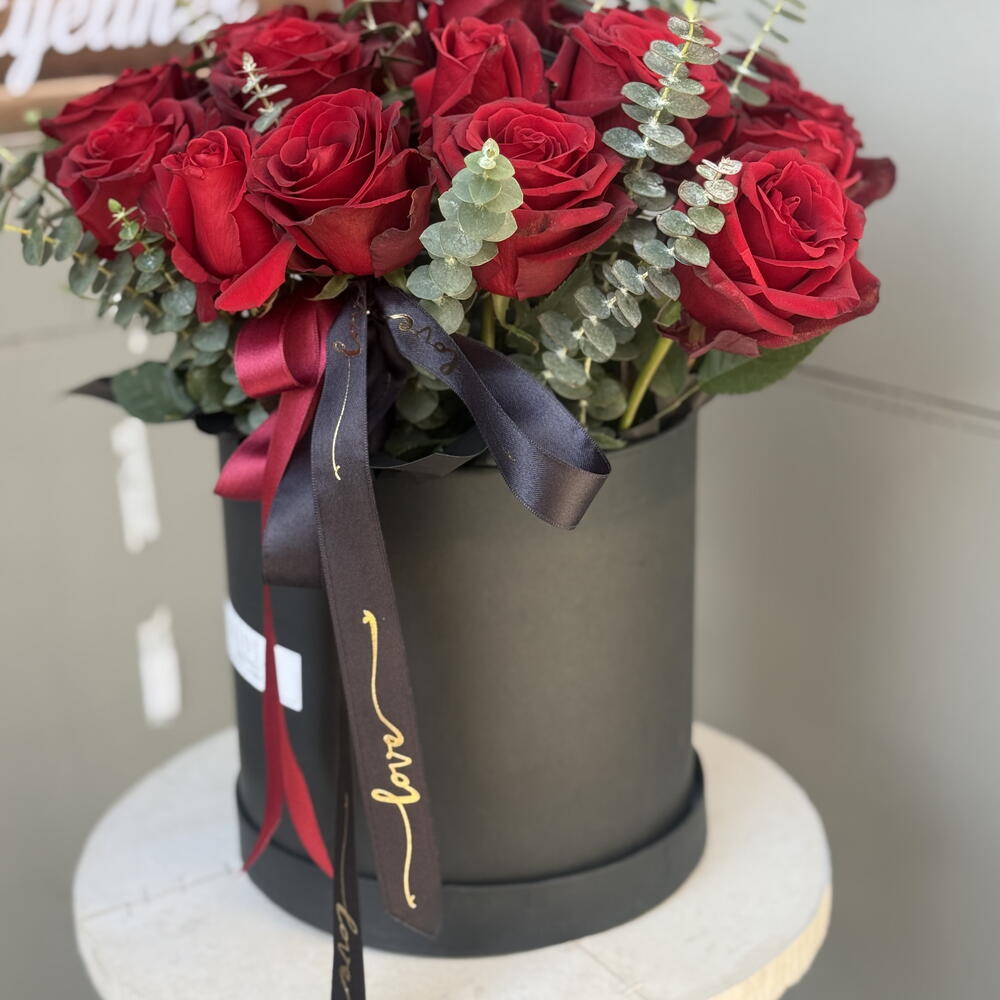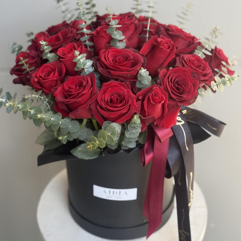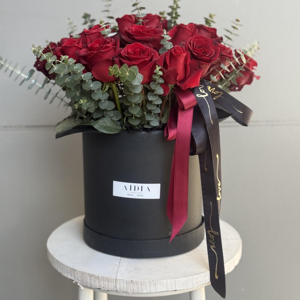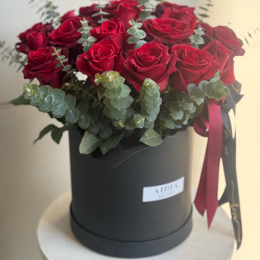 kırmızı gül - 25 adet okaliptus - 10 adet