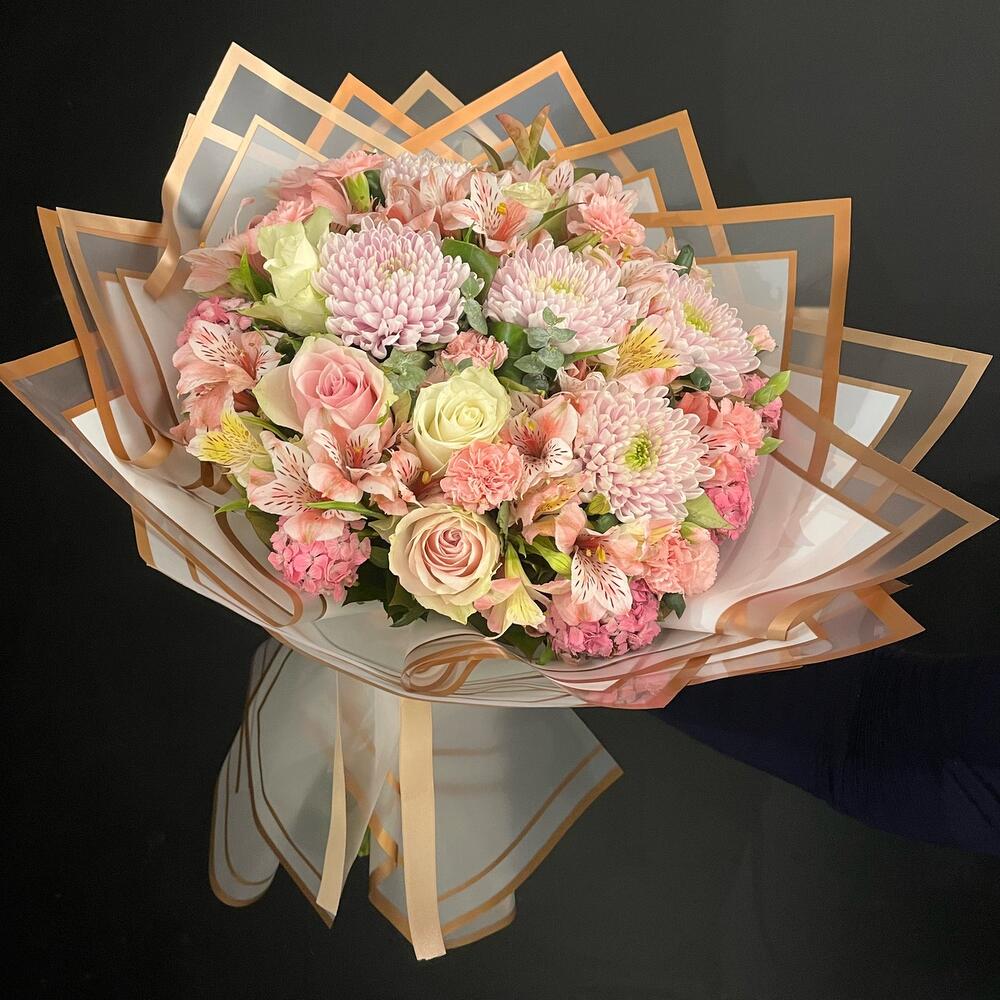 Bu zarif mono buket, romantizmi ve tazelik anlayışını yeniden tanımlar. İçerisinde 4 adet pembe anastasias, 5 adet beyaz gül, 3 adet pembe gül ve 5 adet alstroemerias bulunur. Bu etkileyici ve sofistike kompozisyon, her tür özel anıyı aydınlatmaya mükemmeldir. Zarafeti ve şıklığı temsil eden bu buket, aradığınız özel hediye olabilir.