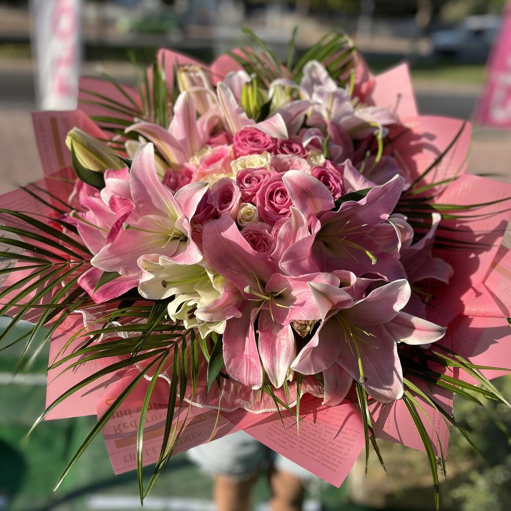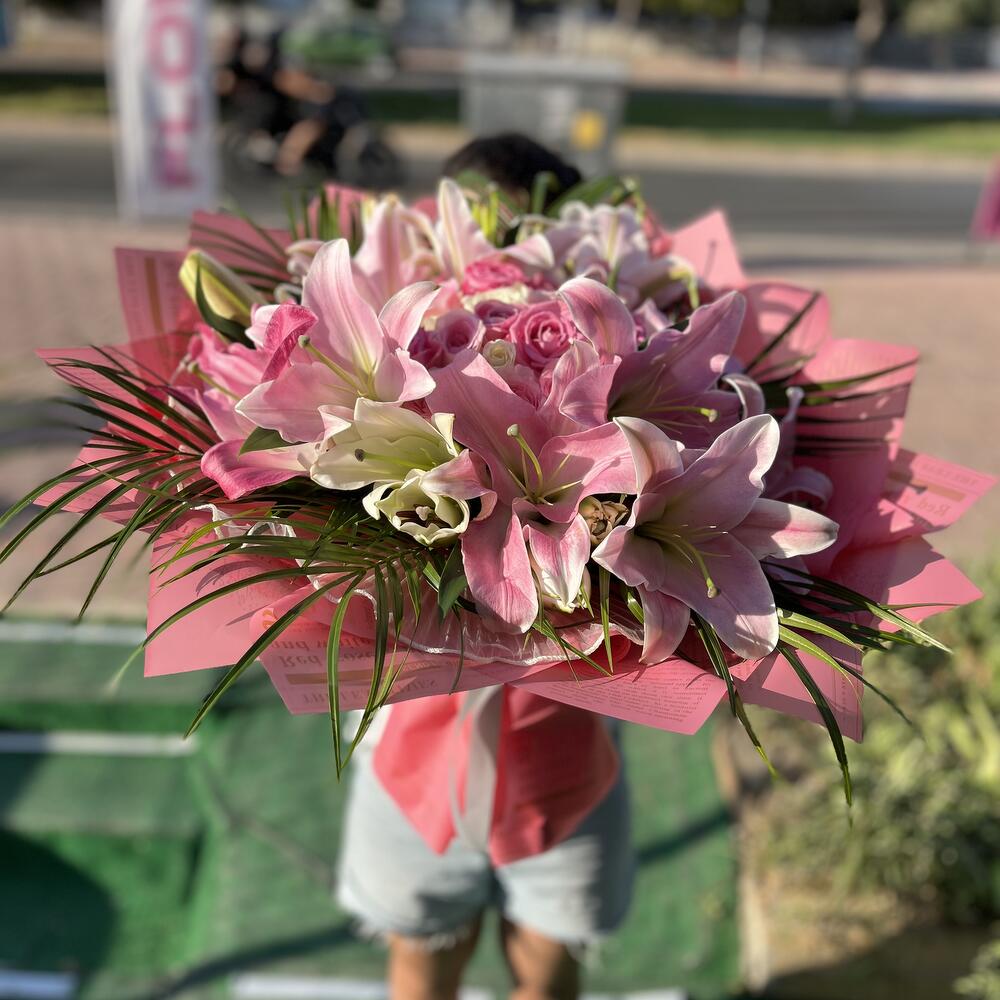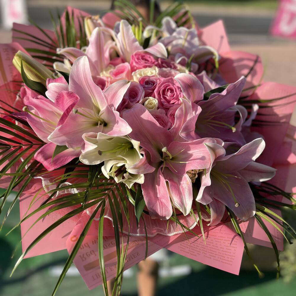 🌸Pembe Beyaz Asalet Buketi 🌸 Romantizmin en şık hali… Pembe zambakların asaleti, pembe güllerin tutkulu zarafeti ve beyaz güllerin masumiyeti bu özel bukette buluştu. 🌿✨ 📌 Öne Çıkan Özellikler: • Zarif pembe zambaklar 🌺 • Romantik pembe güller 🌹 • Saf güzelliğiyle beyaz güller 🤍 • Canlı yeşilliklerle tamamlanan göz alıcı tasarım 🌿 Sevgi, mutluluk ve şıklığı bir araya getiren bu buket; yıldönümleri, doğum günleri, kutlamalar ve özel sürprizler için kusursuz bir tercihtir. 💐 Sevdiğiniz kişiye unutulmaz bir zarafet armağan edin.