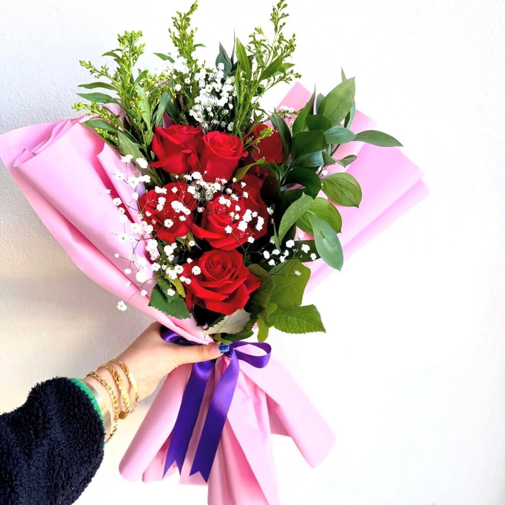 7 kırmızı güllerden ve etrafında ital yeşilliklerden oluşan bu buket sevdiklerinize bir tek sen özelsin anlamı na gelir