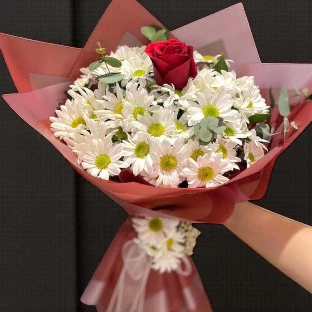 kırmızı gül - 1 adet beyaz papatya - 5 adet