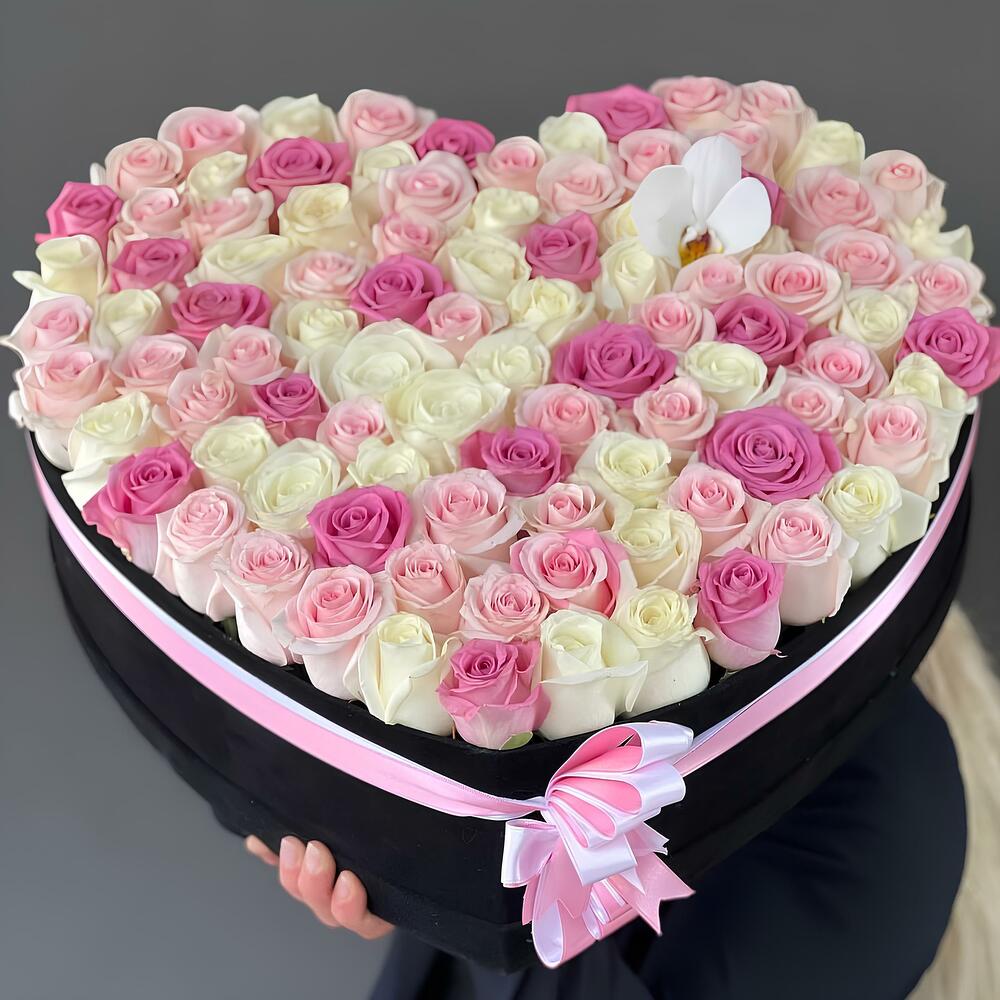 Sevginin en zarif ve gösterişli haliyle tasarlanmış Aşkın Kalbi Gül Aranjmanı, özel anlarınızı unutulmaz kılmak için mükemmel bir seçenek! Kalp şeklindeki şık kutusu içerisinde beyaz, pembe ve fuşya güllerin ahenkli birleşimiyle tasarlanan bu aranjman, aşkı ve zarafeti en güzel şekilde temsil ediyor.