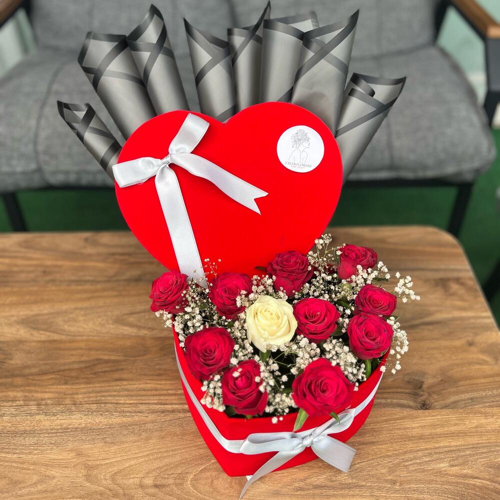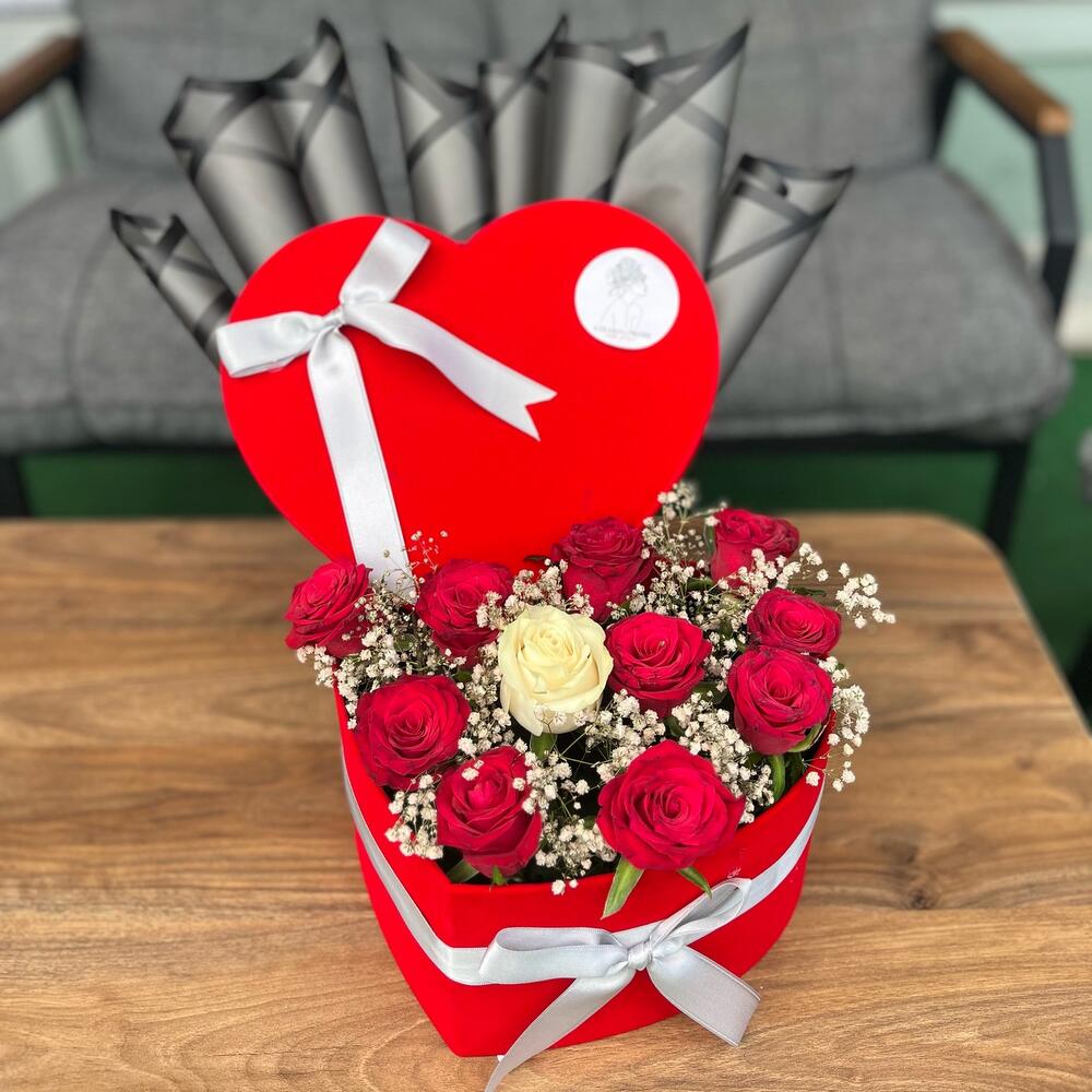 ❤️ Aşkın Kalbindeki Güller ❤️ Kırmızı kalp kutu içinde özenle yerleştirilmiş taptaze kırmızı güllerin arasına gizlenmiş tek bir beyaz gül… Kırmızının tutkulu anlamı ile beyazın saf ve temiz ifadesi, sevginizi hem güçlü hem de zarif bir şekilde anlatır. Sevgililer Günü, yıldönümü, doğum günü ya da “Seni Seviyorum” demek istediğiniz her an için unutulmaz bir hediye. 💐 Not: Kırmızı gül tutkuyu, beyaz gül ise saf sevgiyi simgeler; bir arada ise “Sonsuza kadar seninim” der.