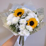 beyaz krizantem - 4 adet ayçiçeği - 2 adet