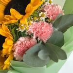 Buketimiz, şaşırtmak ve büyülemek için tasarlanmış, türünün tek örneği bir eserdir. Işıltılı ayçiçekleri, yumuşak pembe karanfiller ve neşeli papatyalar içeren bu buket, her durum için mükemmel bir tamamlayıcıdır. Renk ve dokuların eğlenceli karışımı, sıcaklık ve neşeyi çağrıştırarak birinin gününü aydınlatmak için ideal bir hediye olmasını sağlar. Sevgiyle el yapımı olarak hazırlanan bu buket, güzelce aranje edilmiş, gülümsemeler ve güneş ışığı sunmaya hazır bir şekilde gelir.