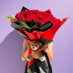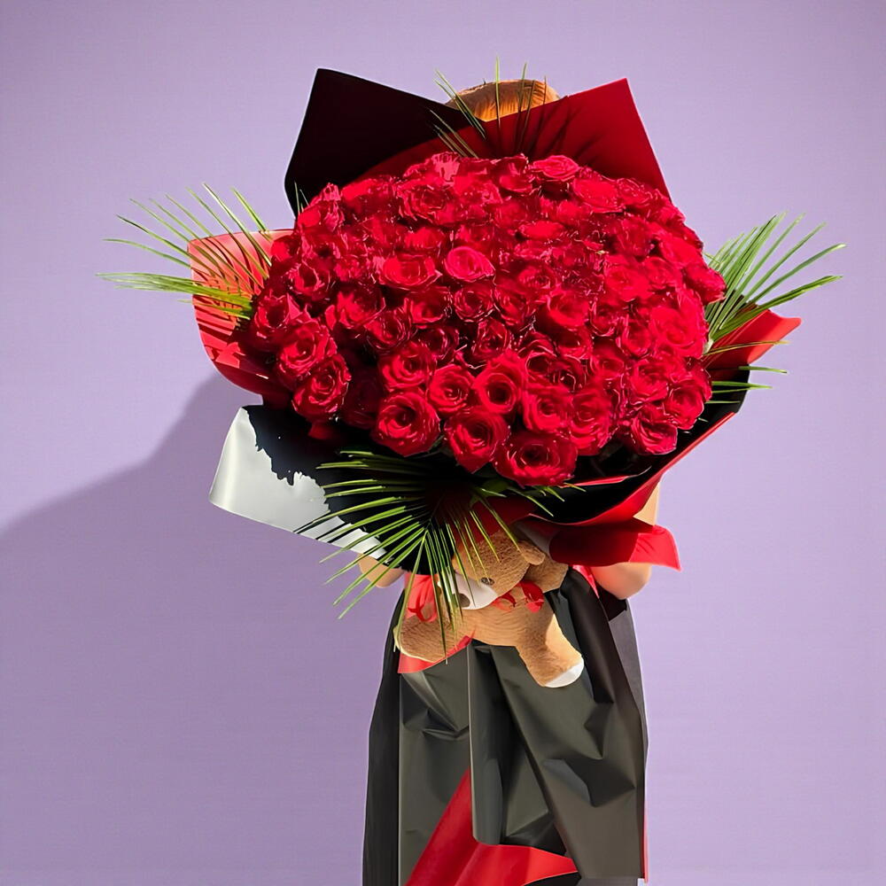 Bu çarpıcı çiçek buketi, romantizmi ve sevgiyi ifade etmenin en güzel yoludur. 50 adet taze kesilmiş gül, buketi hem görsel açıdan çarpıcı, hem de inanılmaz derecede kokulu yapar. Ayrıca tatlı bir ek olarak, sevimli bir ayıcık da eklenmiştir. Bu emsalsiz hediye, herhangi bir özel kişiye veya duruma neşe ve beğeni getirecektir.