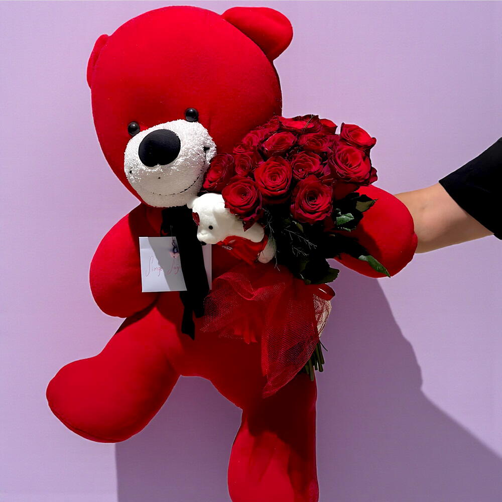 Sevdiklerinizi mutlu etmenin en tatlı yollarından biri! Aşk Ayısı, elinde 15 adet canlı kırmızı gülden oluşan zarif bir buketle birlikte sunuluyor. Sevgililer Günü, doğum günü veya sürpriz yapmak için mükemmel bir hediye seti. Hem çiçeklerin hem de ayıcığın duygularınızı ifade etmesine izin verin