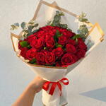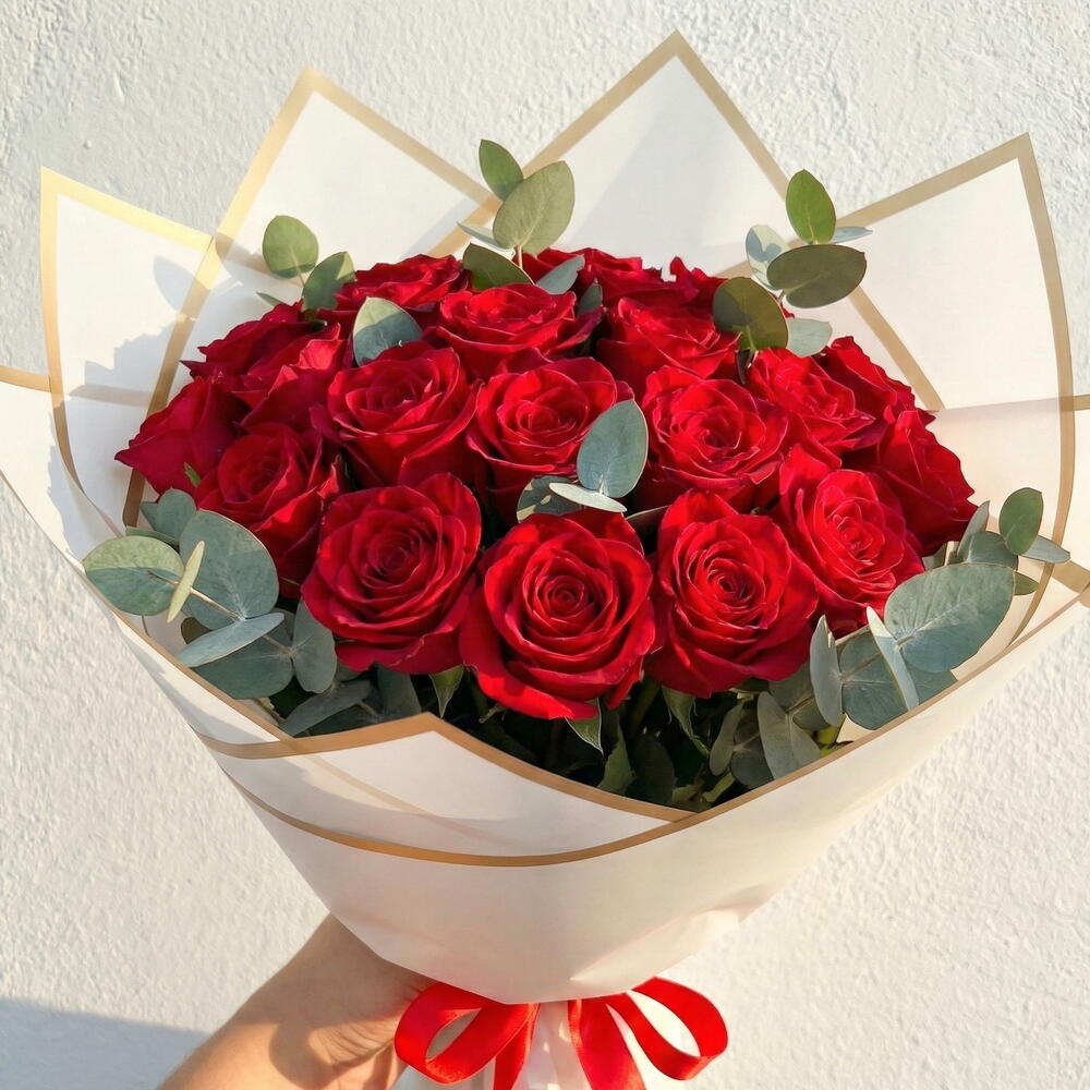 Bu çarpıcı çiçek buketi, aşkın ve tutkunun simgesi olan 41 adet kırmızı gül, 5 adet ferahlatıcı okalaptus ve 3 adet doğal yeşillikten oluşmaktadır. Bu seçkin kompozisyon, her mekana estetik ve güzellik katabilir. Özel anlarınızı kutlamanın veya sevdiklerinize ne kadar değer verdiğinizi göstermenin en zarif yoludur.