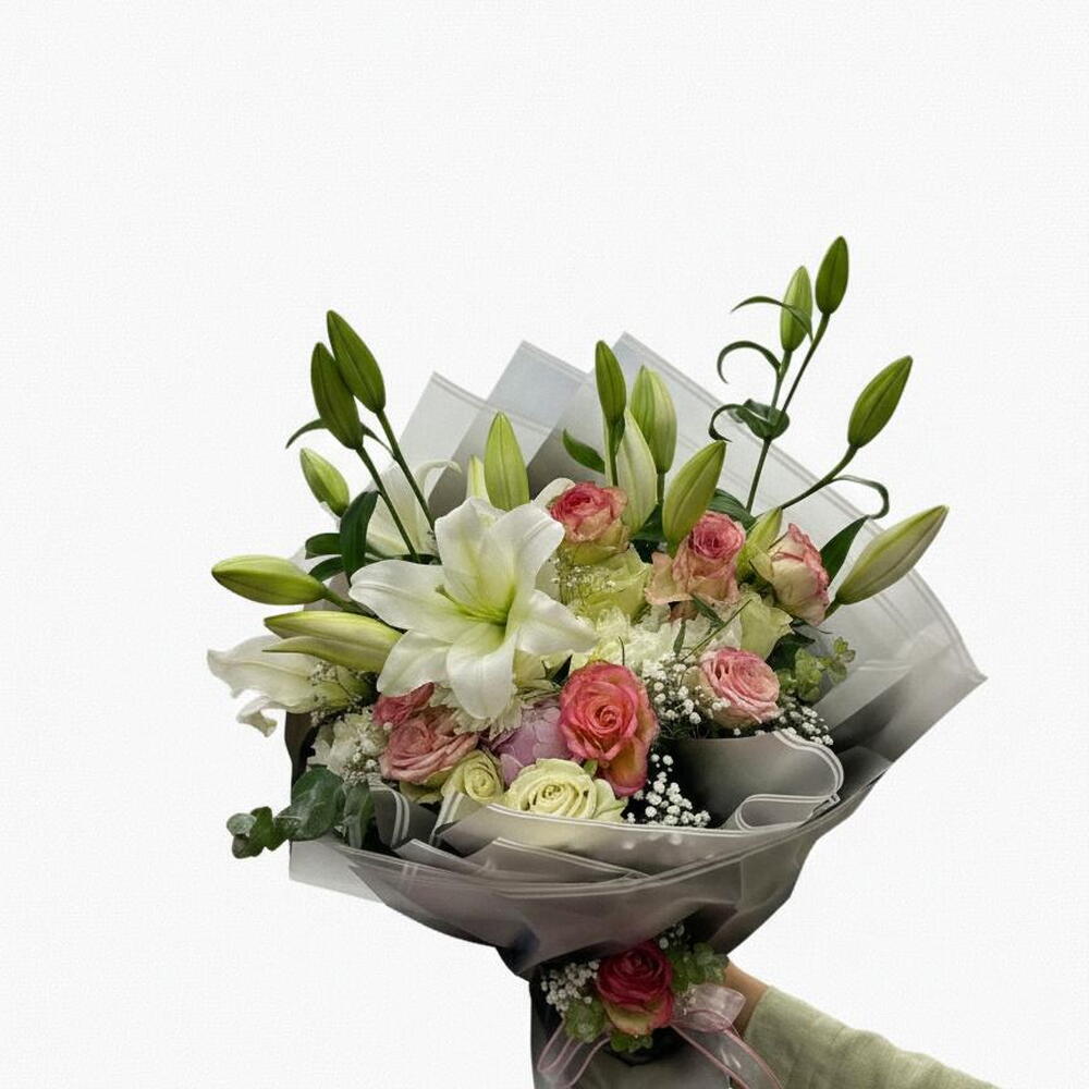 Saflığın ve zarafetin simgesi olan beyaz Casablanca lilyumlar, seçkin ithal güller ile bir araya gelerek göz alıcı ve özel bir buket tasarımı oluşturur. Dolgun yapısı ve uyumlu renk geçişleriyle dikkat çeken bu buket, cipso ve dekoratif yeşilliklerle zenginleştirilmiş, modern ve şık ambalaj ile sunulmuştur. Özel günlerde sevdiklerinize anlamlı bir sürpriz yapmak, duygularınızı zarif bir şekilde ifade etmek için ideal bir tercihtir. Doğum günü, yıldönümü, teşekkür, geçmiş olsun ve özel kutlamalar için uygundur.