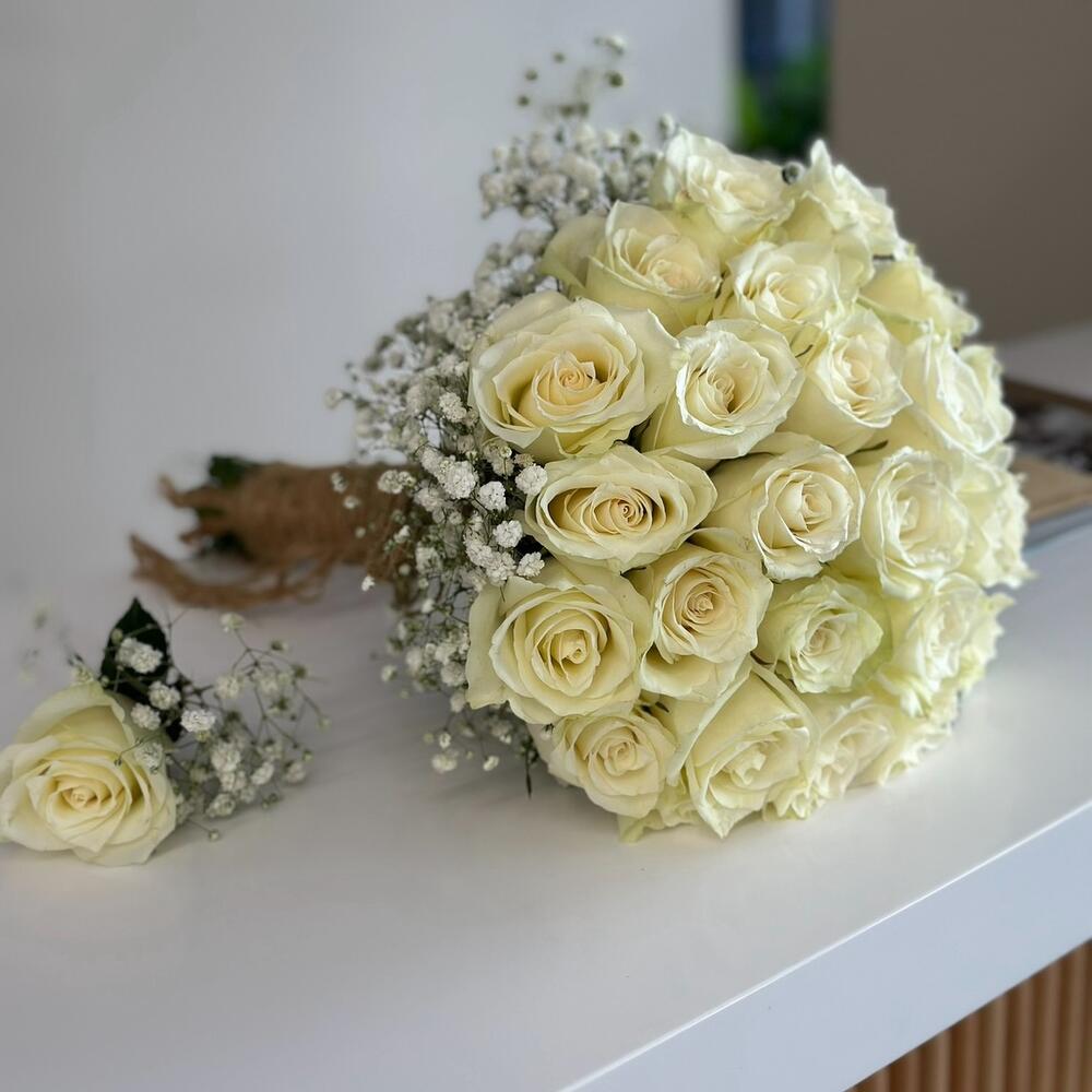 beyaz gül - 25 adet gibsafila - 5 adet