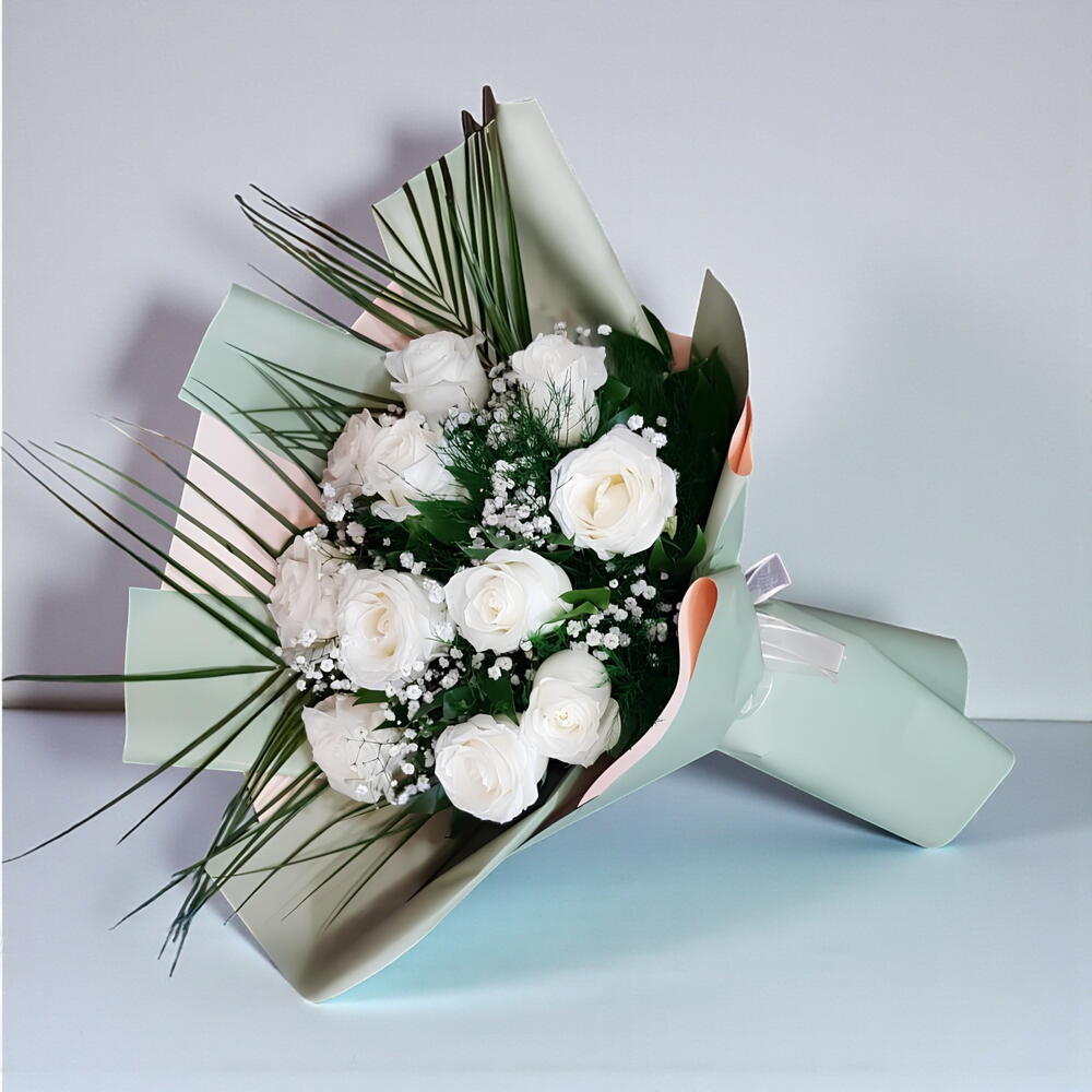 Bu büyüleyici çiçek buketi, 11 adet zarif beyaz gül, 6 parça süsleyici cipso, şık bir ambalaj ve zarif bir kurdele ile hazırlanmıştır. Bu göz alıcı buket, özel günlerinizi daha da özel kılacaktır. İhtişam ve zarafetin mükemmel kombinasyonu olan bu çiçek buketi, sevdiklerinize ne kadar önem verdiğinizi göstermenin en etkileyici yoludur.