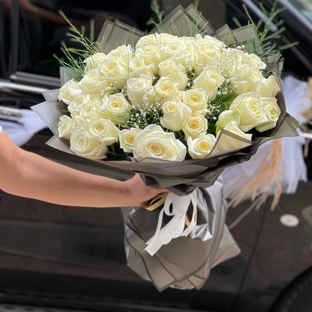 Bu ürün, zarafeti ve saflığı simgeleyen 41 adet beyaz gül ve 30 adet beyaz cipso ile titizlikle hazırlanmış bir çiçek buketidir. Sade ve şık tasarımıyla her türlü özel gün ve etkinlik için idealdir. Sevdiklerinize onları ne kadar değer verdiğinizi hissettirebileceğiniz bu zarif buketi ona göndermek için tereddüt etmeyin.