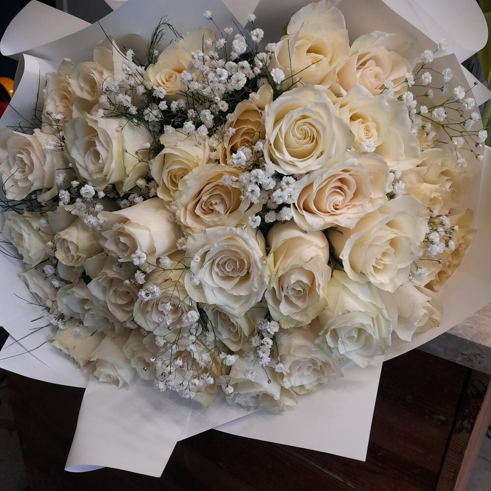 Bu özel çiçek buketi, romantizmi ve masumiyeti temsil eden 41 adet ithal beyaz gül ve cazibeyi temsil eden 10 adet cipsofilyadan oluşmaktadır. Bu zarif çiçek arrangementı, sokakları, evleri ve ofisleri aydınlatmak, atmosferi yumuşatmak ve estetik hissi öne çıkarmak için mükemmel bir zevk sunar. Hem farklı özel günler için harika bir hediye, hem de çeşitli dekorasyon fikirlerine ilham vermek üzere tasarlanmıştır.