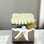 Şık bir hediye alternatifi olarak tasarlanan bu beyaz gül kutusu, romantik anlarınızı taçlandıracak. Şık kutusu, beyaz kurdele detayı ve dekoratif başaklarla süslenerek hem klasik hem de modern bir dokunuş sunuyor. Doğum günü, yıldönümü, düğün veya özel günler için mükemmel bir tercih!