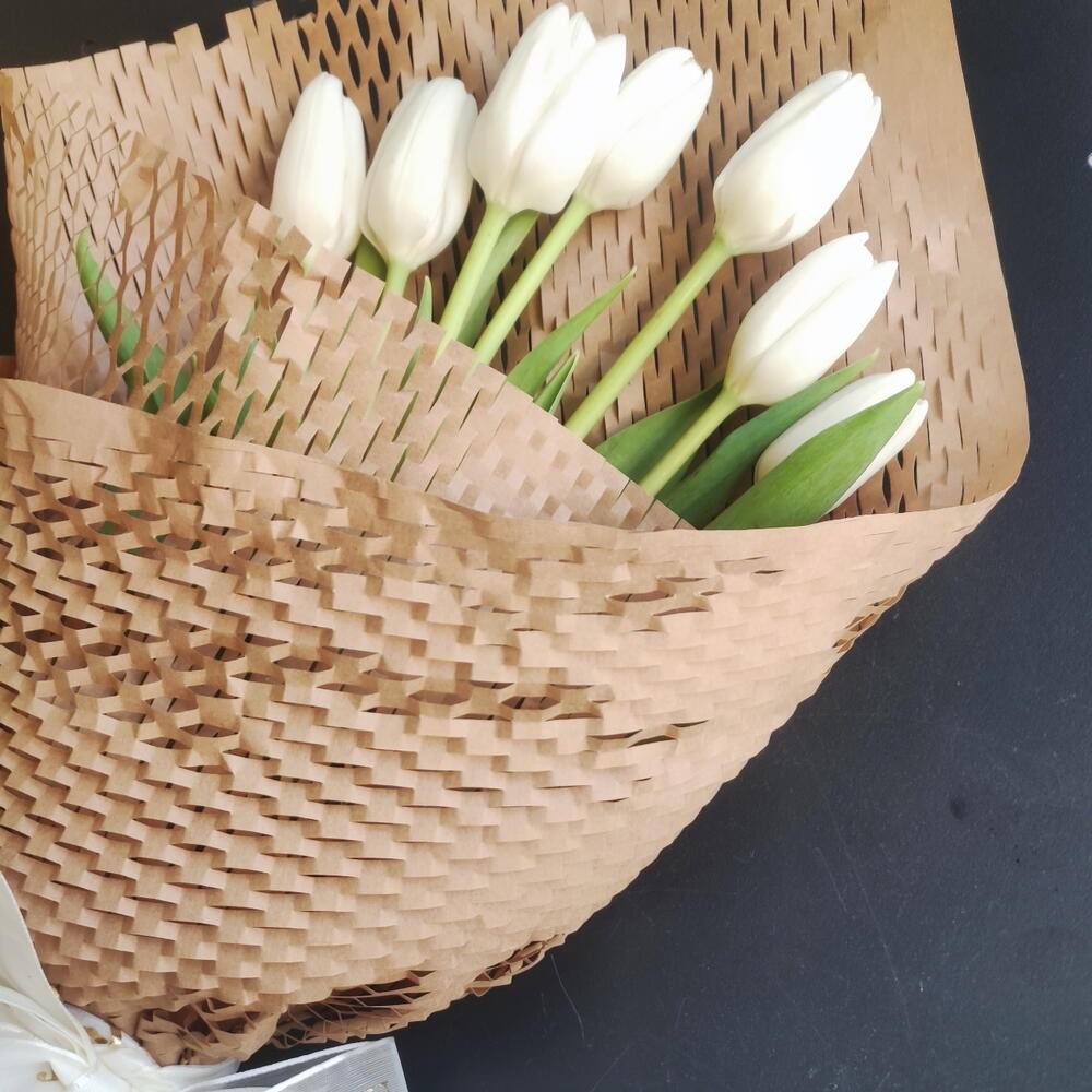 Bu büyüleyici çiçek buketi, bir mesajınızı iletmek için mükemmel bir yoldur. Seven adet yemyeşil beyaz laleler, zarif bir not kartı ve sofistike bir craft kağıdına sarılı olarak geliyor. Bütün bunlar, sevdiklerinizin özel günlerini daha anlamlı ve unutulmaz kılmak için özenle hazırlandı.
