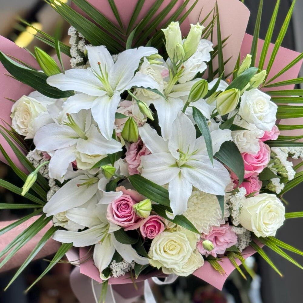 Beyaz Lilyum Pembe Gul ve Beyaz Guller