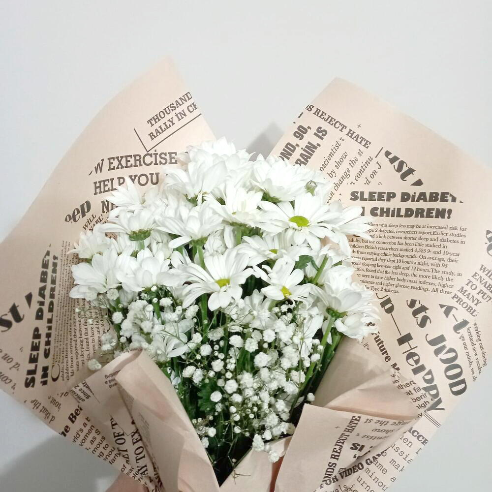Bu zarif çiçek buketi, doğadan ilham alınarak tasarlanmıştır. Zarafeti ve tazeliği simgeleyen 30 adet beyaz papatya, göz alıcı ve parlak 7 adet cipso çiçeği ile birleştiğinde, bu çiçek düzenlemesi kalıcı bir izlenim bırakıyor. Her bir çiçek, titizlikle seçilmiştir ve buketi eşsiz bir armağan veya dekorasyon hale getirir. Sevdiklerinizi bu çiçeklerin doğal güzelliği ve neşesiyle şımartın.