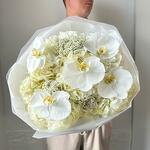 ozothamnus - 3 adet ambalaj - 1 adet beyaz ortanca - 3 adet phalaenopsis orkide - 5 adet