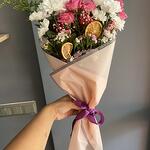 beyaz papatya - 15 adet soli - 2 adet pembe çardak gül - 8 adet kuru limon - 2 adet cipso pembe - 4 adet pembe hüsnü yusuf çiçeği - 8 adet