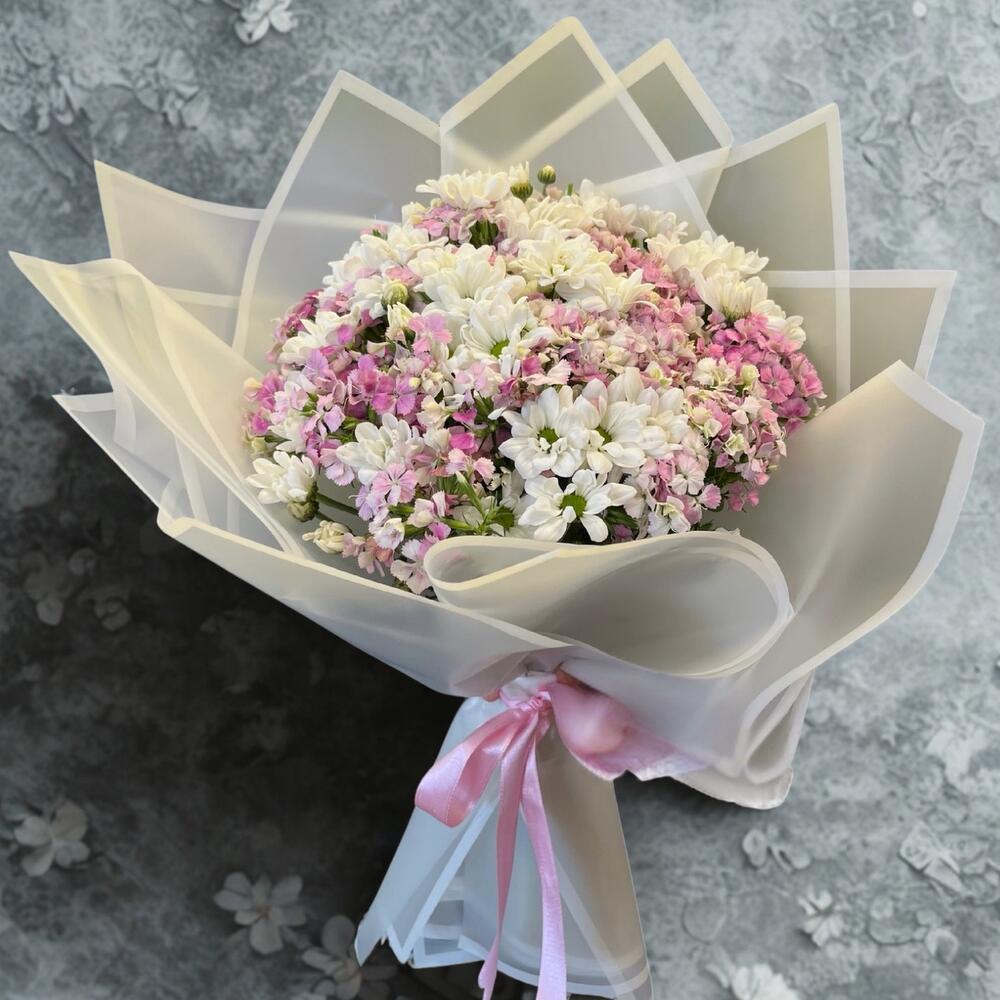 Beyaz papatya pembe Husnu Yusuf buketi