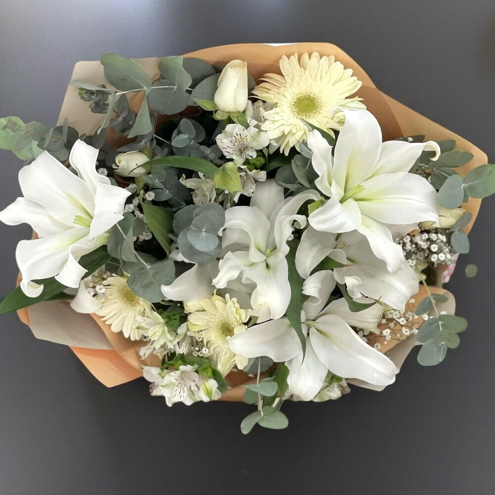 Beyaz Sevgi Buketi – Lilyum ve Gerberalı Şık Aranjman