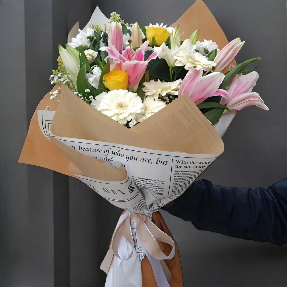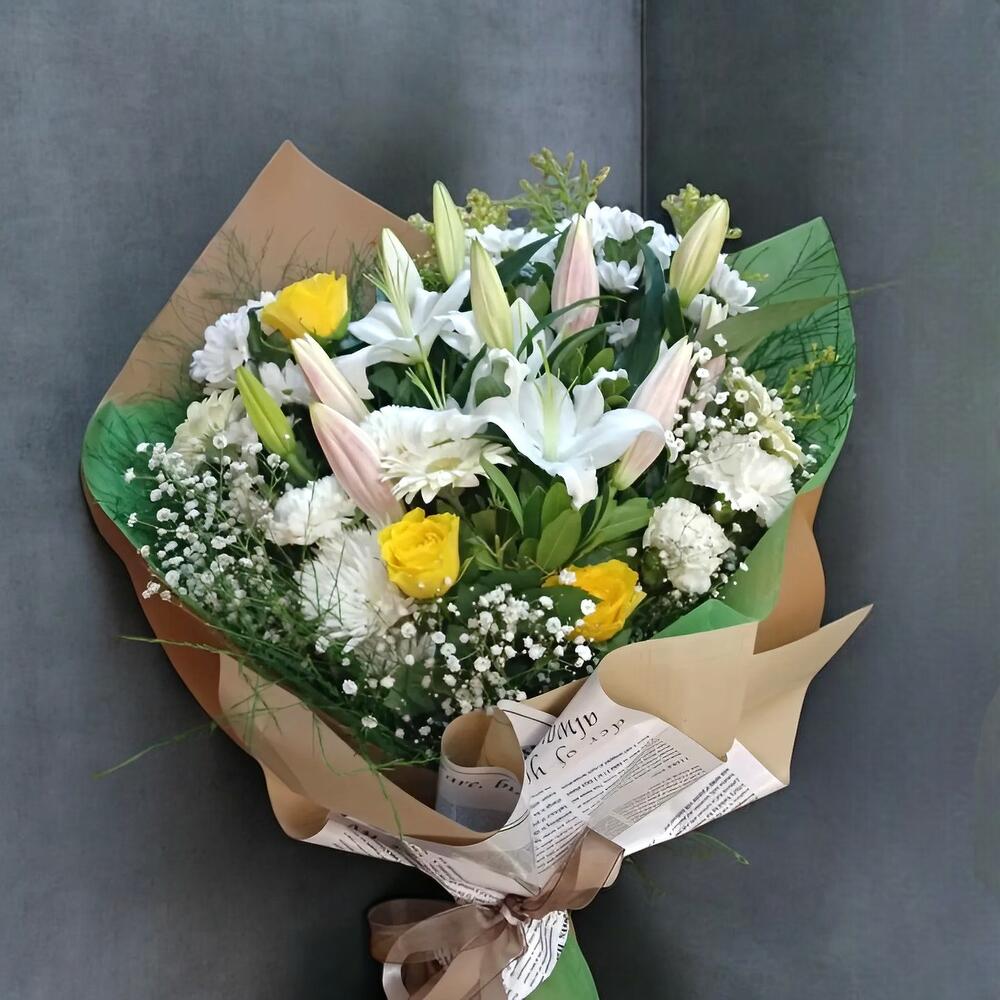 Beyaz ve Sarı Lilyum ve Papatya Buketi