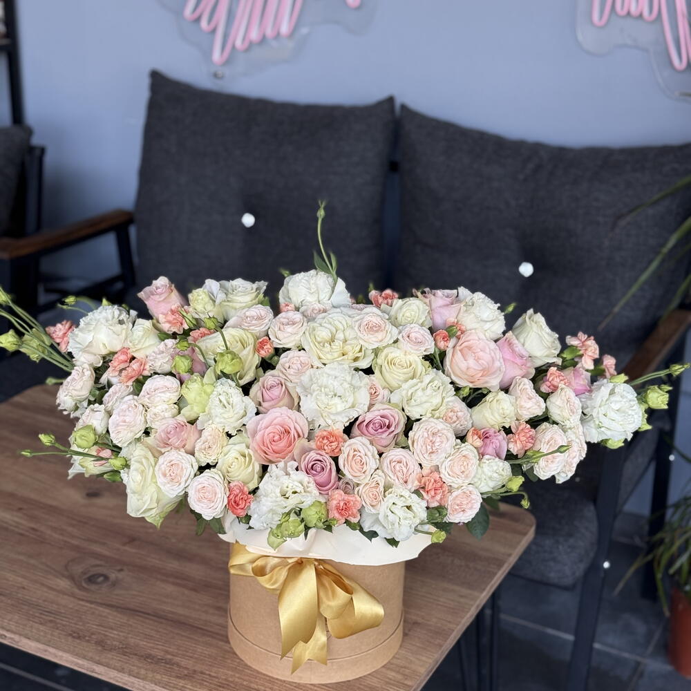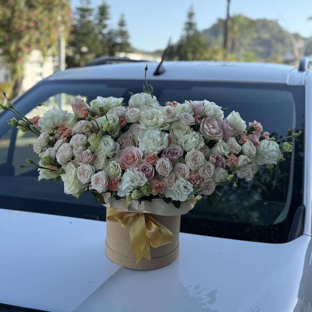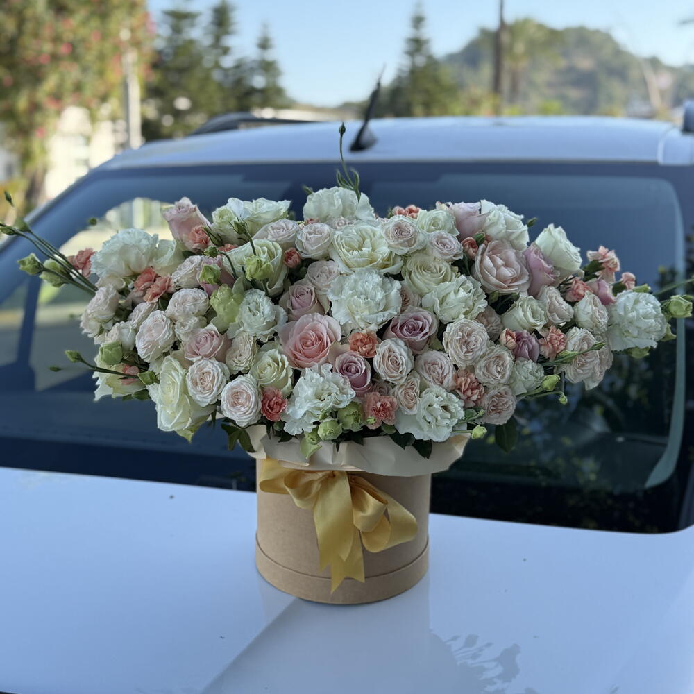 Eustoma - 21 adet roses - 25 adet cream roses - 11 adet gvazdikai - 15 adet