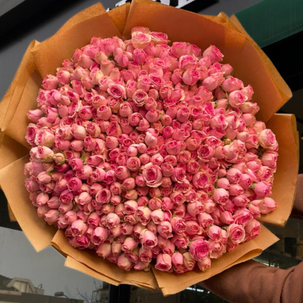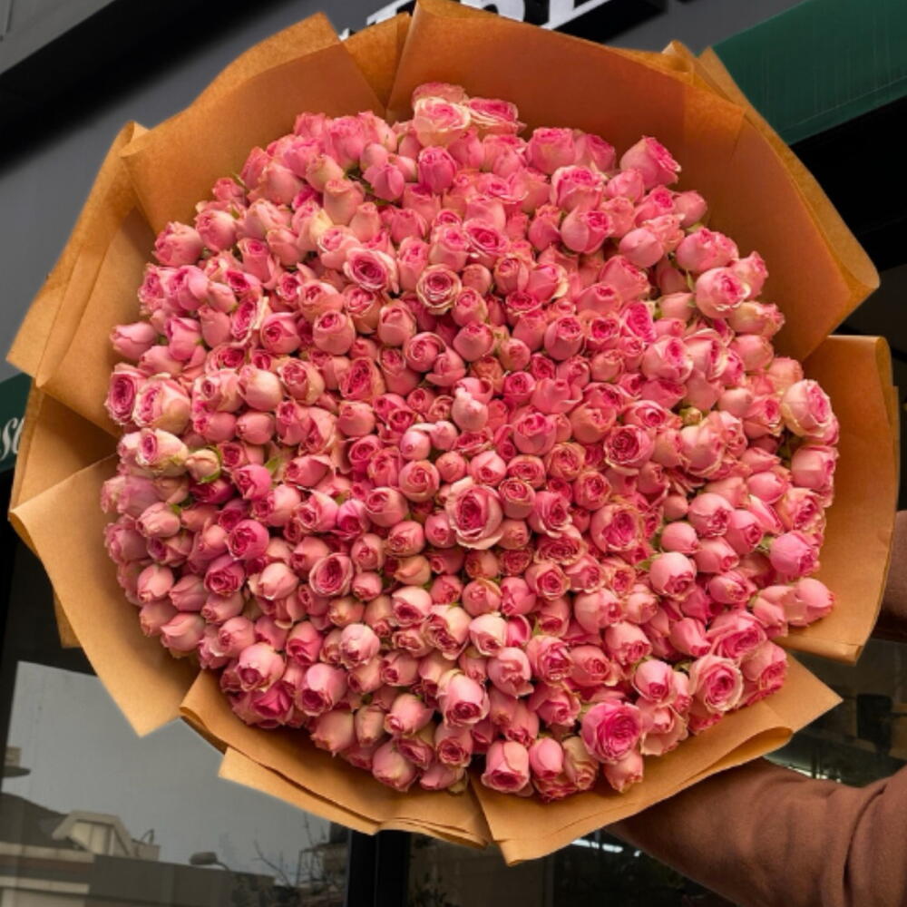 101 adet pembe çardak gül ile hazırlanan bu dev buket, sevginizin en büyük ifadesi. Zarif ambalajı ve etkileyici boyutlarıyla unutulmaz bir sürpriz sunar.