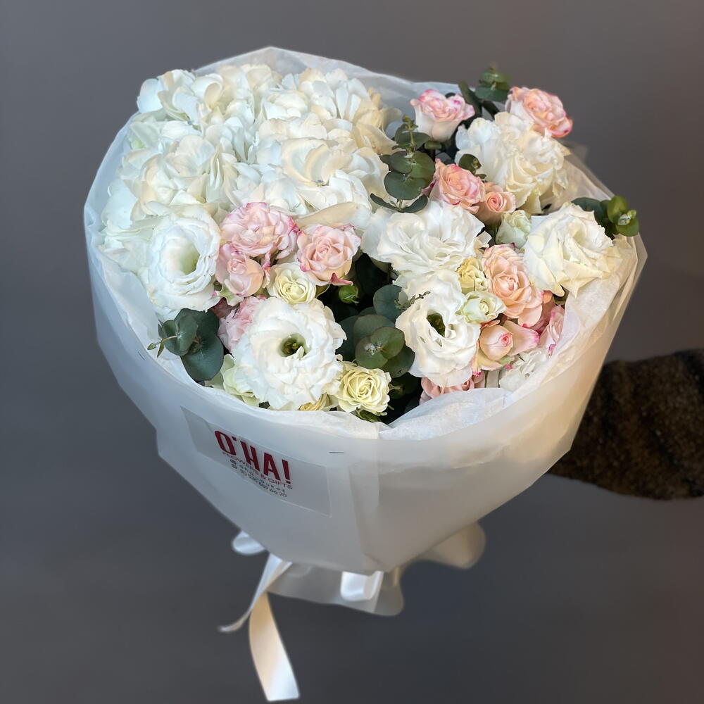 Ortanca - 1 adet Çalı gülü - 4 adet Eustoma - 5 adet Okaliptüs Karışımı - 1 adet Boks - 1 adet