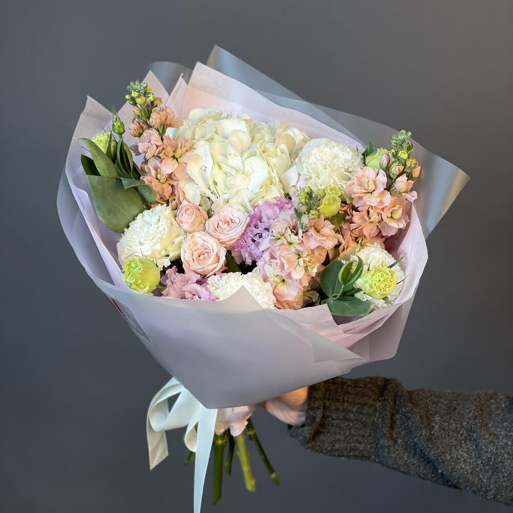 Karışık Buket, her biri kendi benzersiz güzelliğiyle dikkat çeken çeşitli çiçeklerden oluşan zarif bir aranjman. Bu buket, 4 adet narin Eustoma, 3 adet şaşırtıcı Mattiola, 1 adet çalı gülü ve 1 adet göz alıcı ortanca içerir. Aranjmanın tüm çiçekleri taze, canlı ve yüksek kalitededir - mükemmel bir hediye ya da evinizin dekorasyonunu canlandırmanın zarif bir yolu. Üstelik bu çiçekler, şık bir hediye kutusunda sunuluyor, bu da onları daha da çekici kılıyor. Bu Karışık Buket, herhangi bir özel günü unutulmaz kılacak.