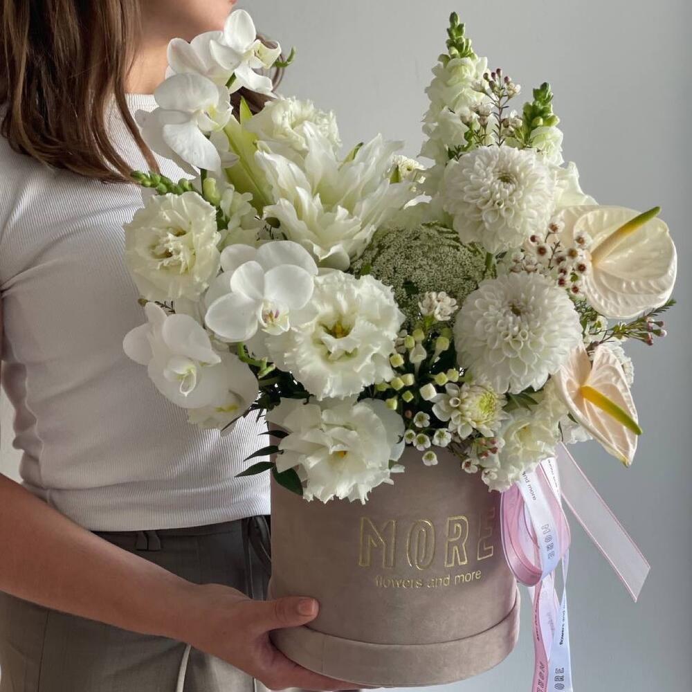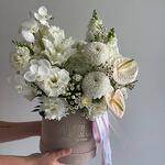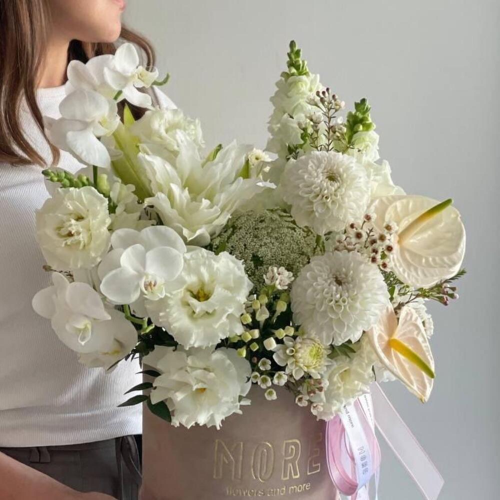 Box - 1 adet Lisianthus - 4 adet Lilium - 1 adet anne - 2 adet anturyum - 2 adet orkide - 2 adet emici kağıt - 2 adet