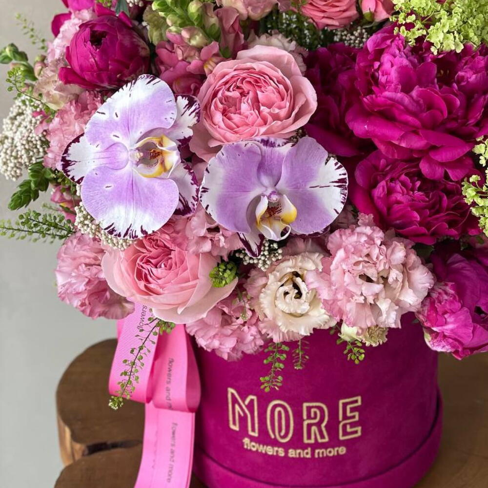 Box - 1 adet dianthus - 5 adet matthiola - 2 adet gortenzia - 1 adet evkalipt - 1 adet roses - 4 adet sprey güller - 2 adet