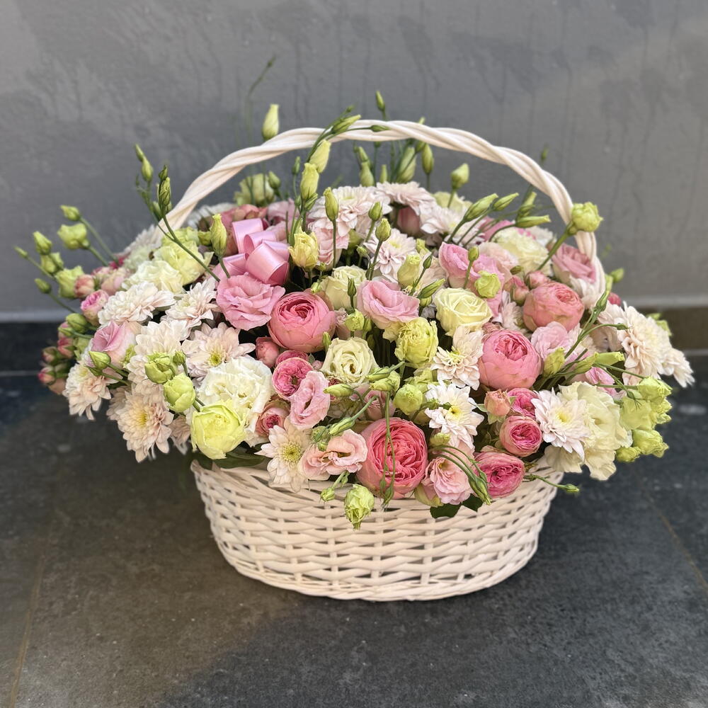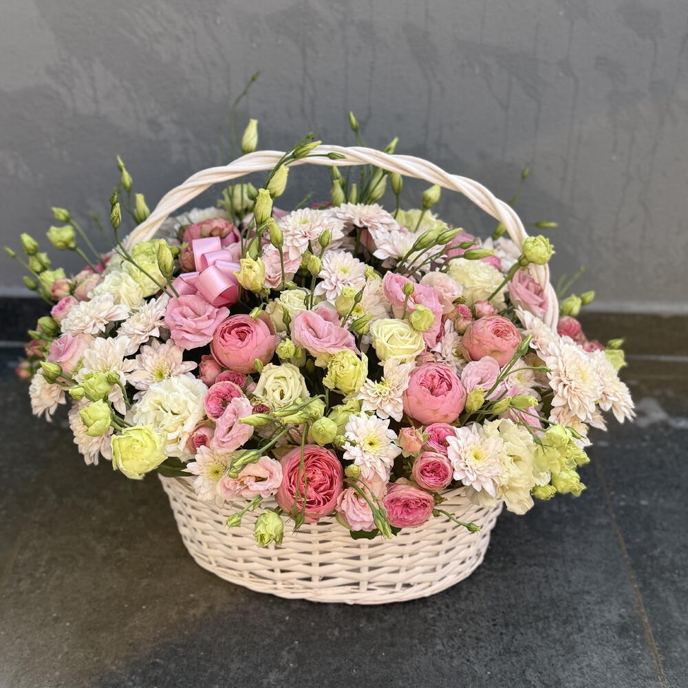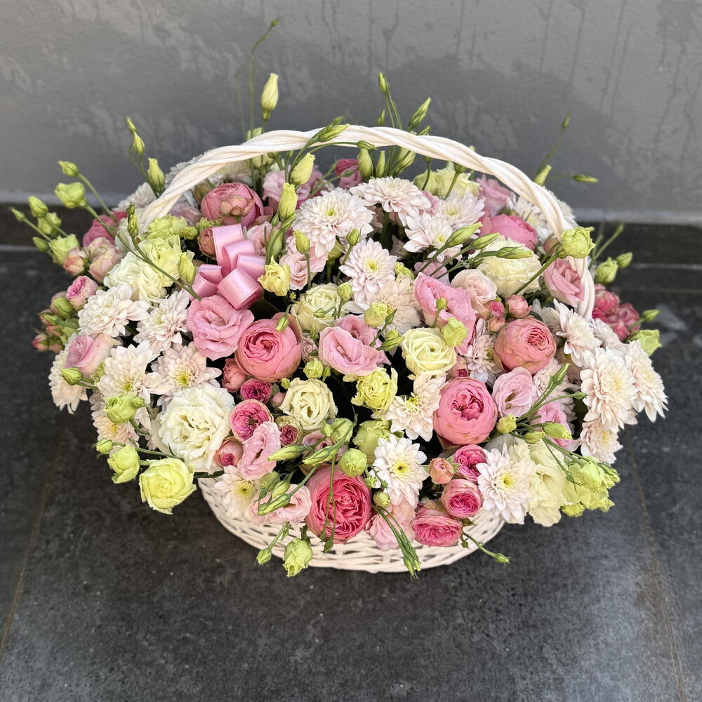 Eustoma white - 9 adet eustoma pink - 9 adet krizantem - 7 adet kustova roz pink - 9 adet peonik rose - 25 adet