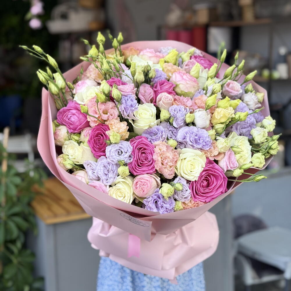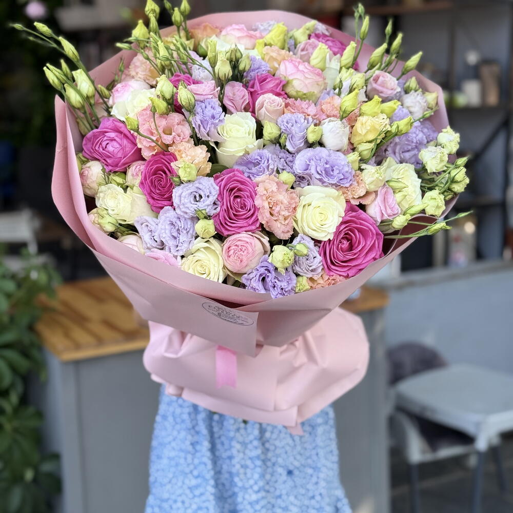 Eustoma - 25 adet Pink rose - 9 adet White rose - 9 adet peonik rose - 15 adet