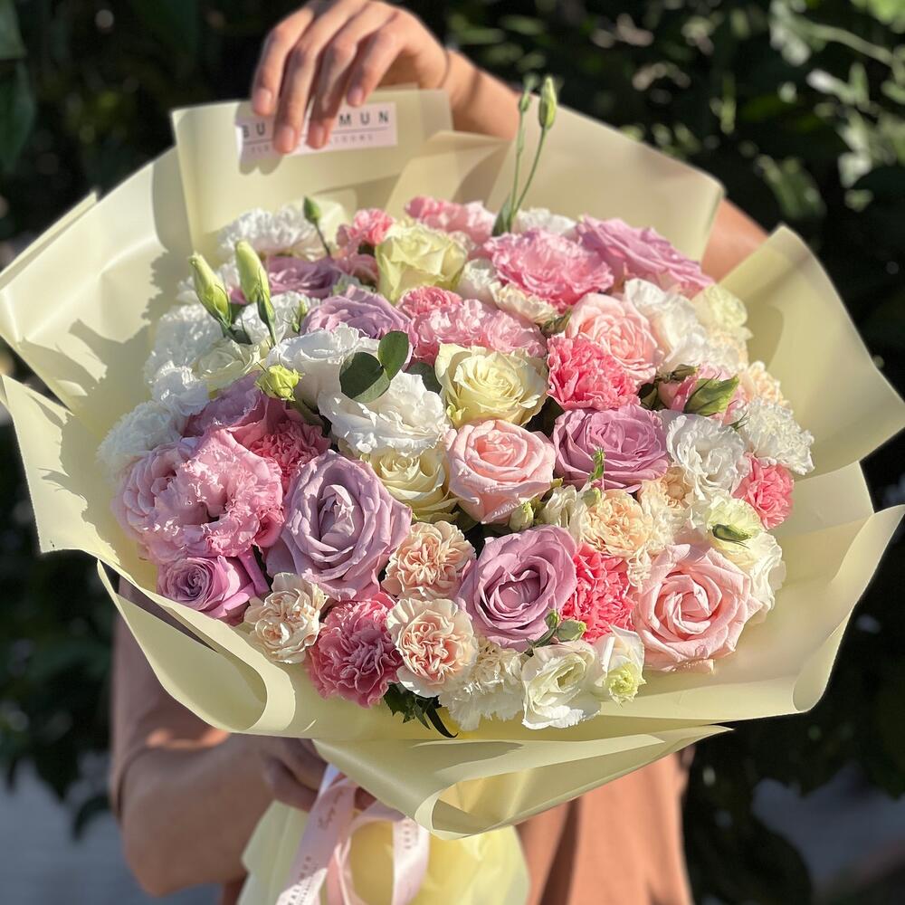 Soft renklerle tasarlanmış butik buket.