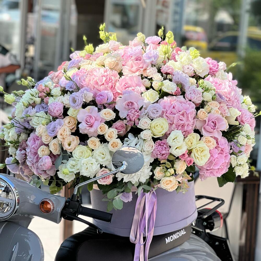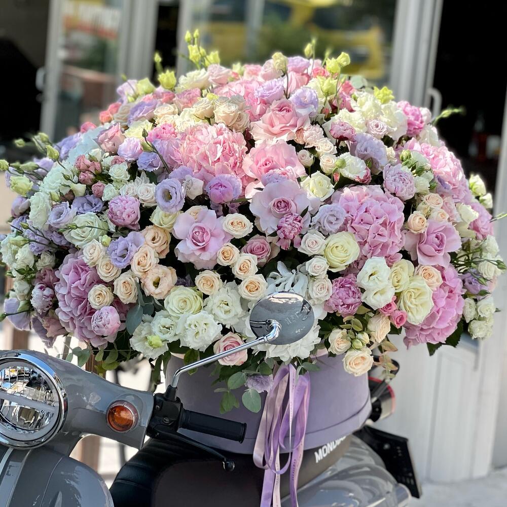 Eustoma - 90 adet Spray rose - 45 adet Peony - 21 adet gartenzia - 15 adet roses - 100 adet