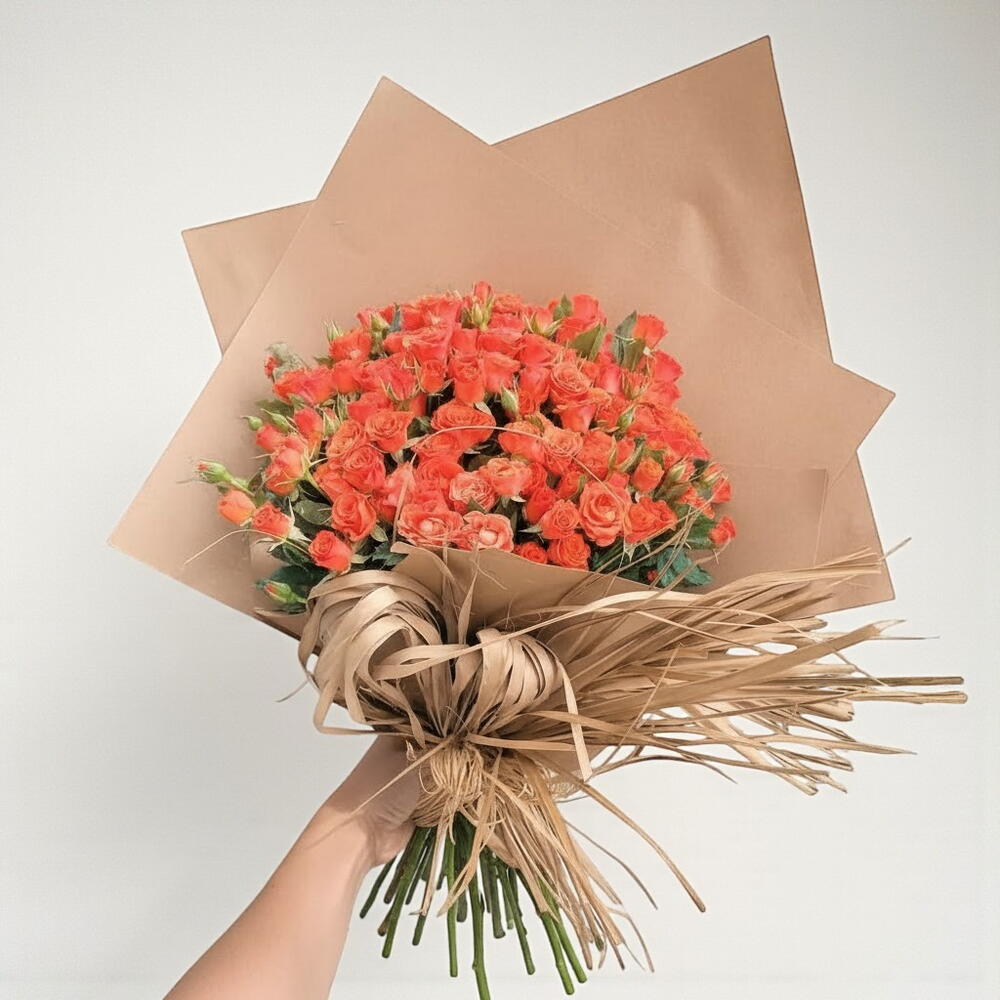 Bu muazzam kırmızımsı turuncu güllerden oluşan buket, her ortama zarif bir dokunuş katacak şekilde tasarlandı. Canlı renkleriyle dikkat çeken bu güller, sevgiyi ve tutkulu duyguları en güzel şekilde ifade eder. Buketin zarif dokusu, doğal yapısı ve yaratıcı sarma tarzı ile göz alıcı bir görsellik sunar. Buketinizin taze kalması için gülleri serin bir yerde tutmalı ve düzenli olarak su vermelisiniz. Aynı zamanda buketinizi doğrudan güneş ışığından uzak tutarak uzun ömürlü olmasını sağlayabilirsiniz.
