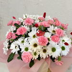 Хороший букетик, необычный, самый недорогой с розами. Внизу, вроде как, флористическая губка. Доставка отлично в срок.