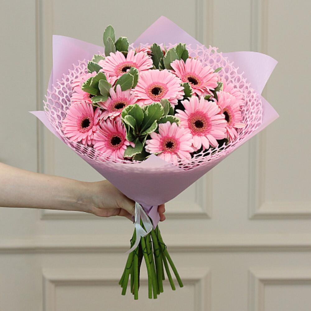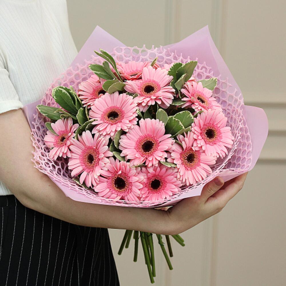 paketleme - 5 adet pembe gerbera - 15 adet yeşillik - 18 adet