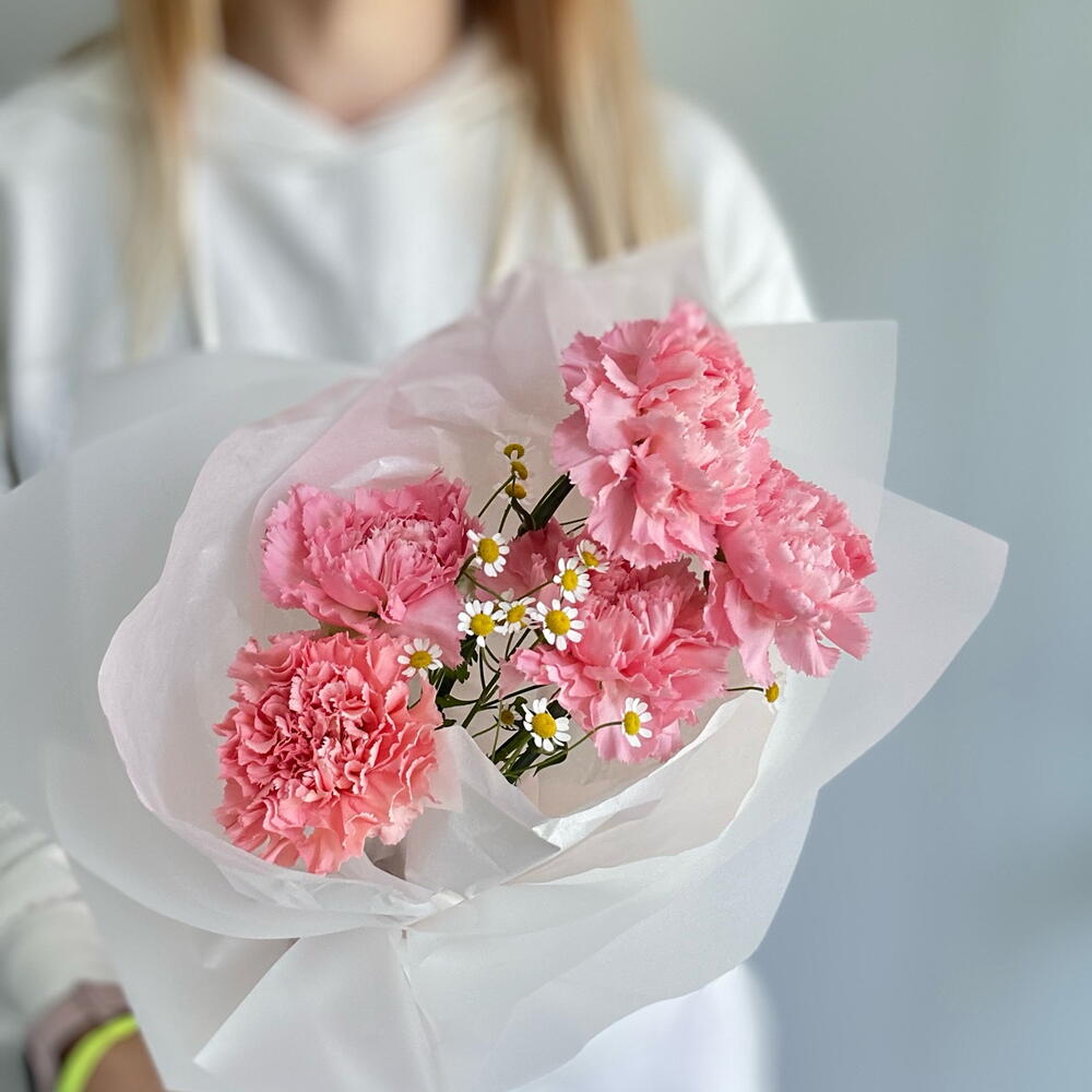 Hassas karanfil ve hafif papatyalar alıcıyı uzun süre mutlu edecek. Karanfil rengi isteğe göre ayarlanabilir.