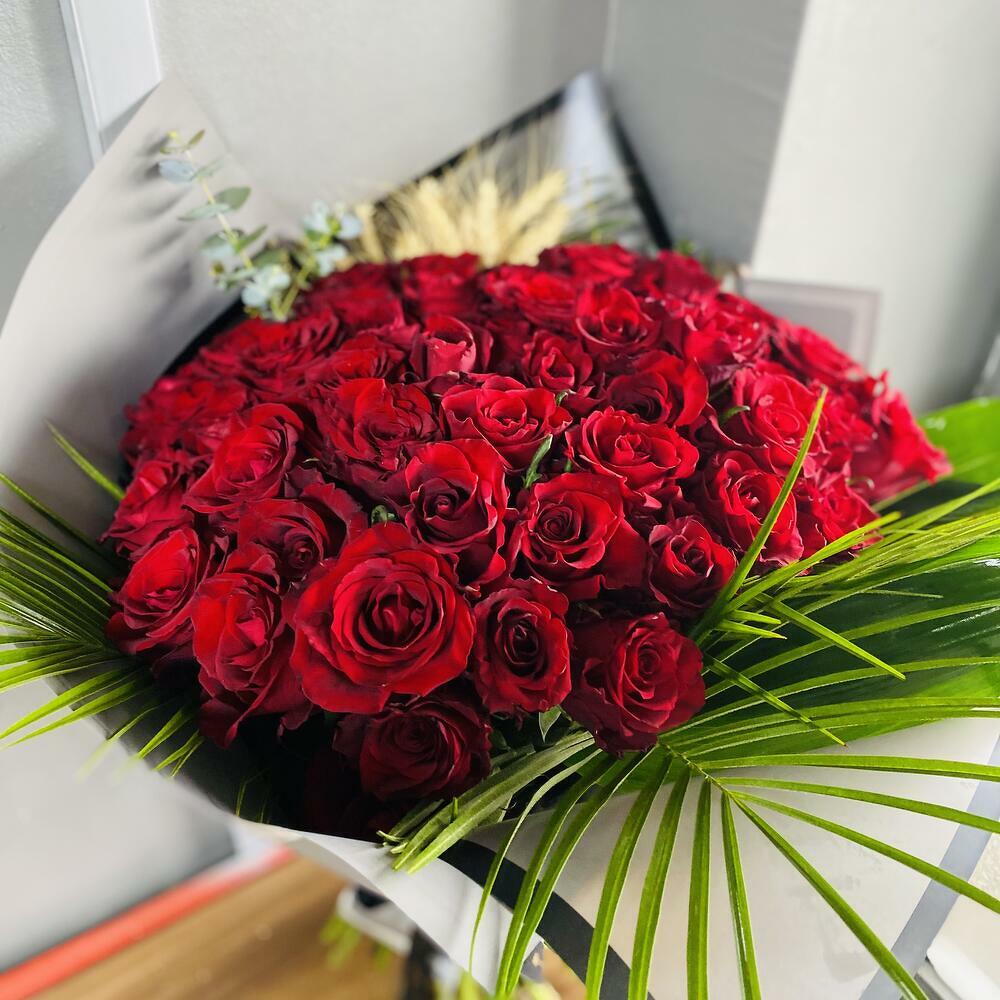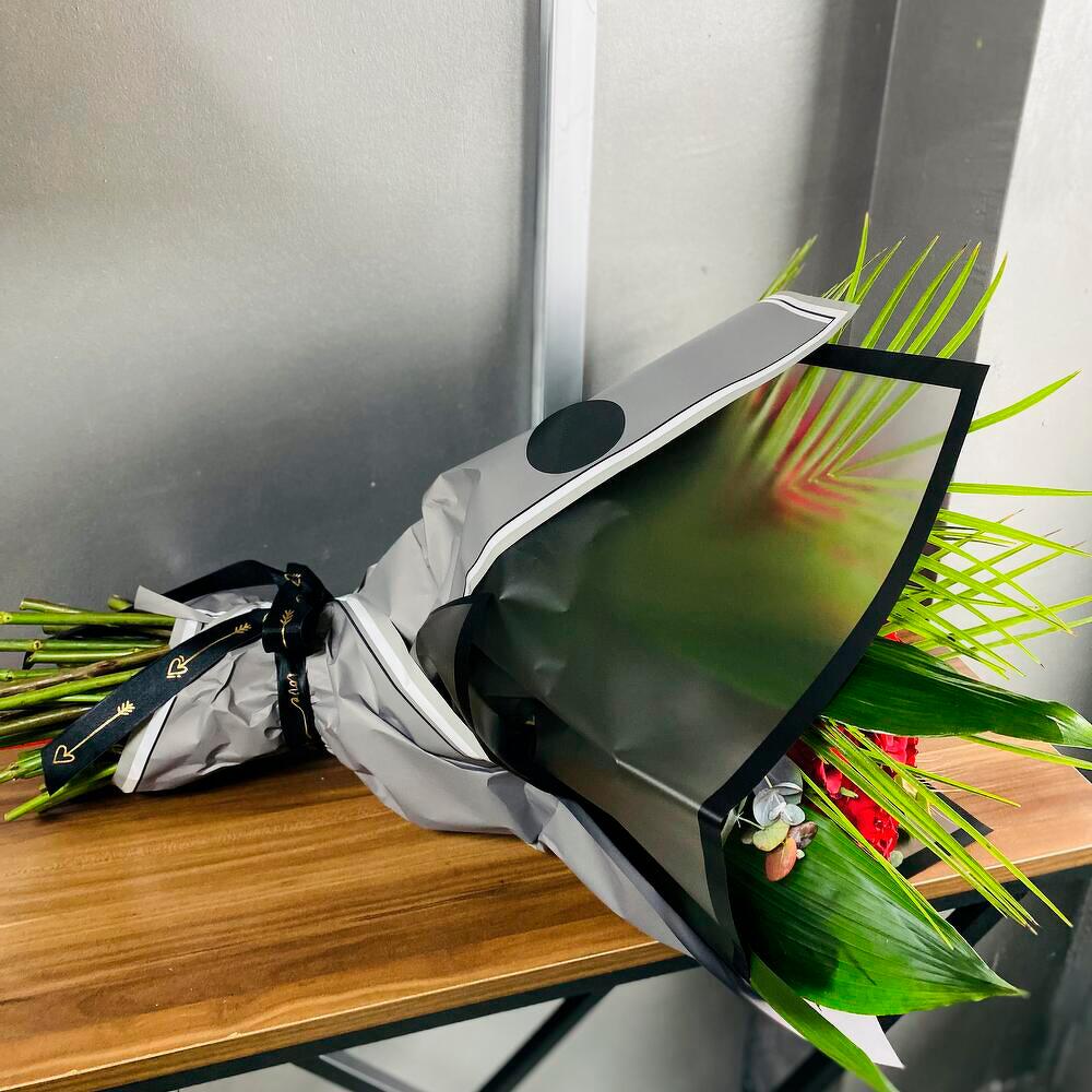 Bu muhteşem buket, 30 adet kırmızı gülün romantik ve tutkulu ifadesini doğal yeşilliklerle buluşturarak, sevdiklerinize unutulmaz bir hediye sunuyor. Güllerin kadifemsi dokusu ve büyüleyici kokusu, aşkın ve zarafetin en güzel sembolü olurken, palmiye yaprakları ve okaliptus dalları bukete ferah bir görünüm kazandırıyor. Rustik bir dokunuş sağlayan buğday başakları ise aranjmana doğal ve samimi bir hava katıyor. Buketin tazeliğini koruyabilmek için doğrudan güneş ışığından uzak tutulmalı, saplar düzenli olarak kesilmeli ve vazo suyu her gün tazelenmelidir. Kırmızı güllerin ihtişamını en etkileyici şekilde yansıtan bu buket, özel günlerinizde sevgi dolu bir mesaj vermenin en güzel yoludur.