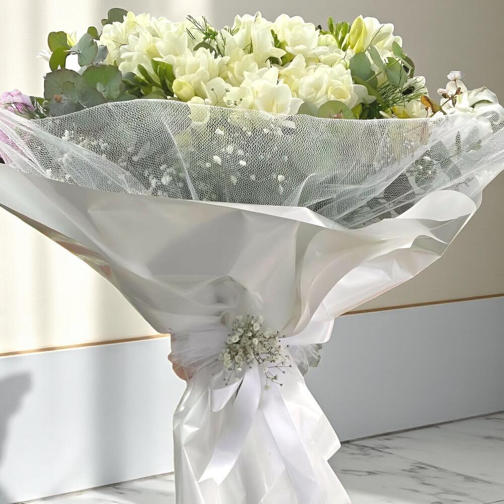 Buyuk Boy Beyaz Frezya Buketi