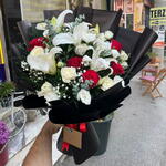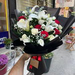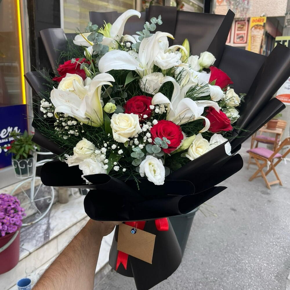 gül - 11 adet virgatus - 30 adet cipso - 10 adet okaliptus yaprağı - 20 adet lilyum beyaz - 5 adet