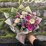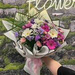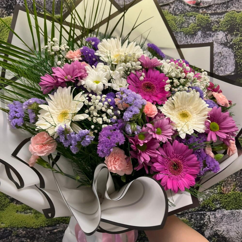 Canlı pembe gerberalar, romantik mor Status çiçekleri ve neşeli pembe-beyaz papatyaların buluştuğu bu büyük boy buket, enerjisiyle her ortama mutluluk getiriyor! 🌷 Beyaz dış sargısı ile zarif bir görünüm kazanan bu özel tasarım, hem renkli hem de sade bir şıklık sunar. 🤍 💖 Anlamı: Neşe, sevgi ve pozitif enerji. 🎁 Özel günlerde, doğum günlerinde ya da sevdiklerinize içten bir “iyi ki varsın” demek için harika bir hediye!