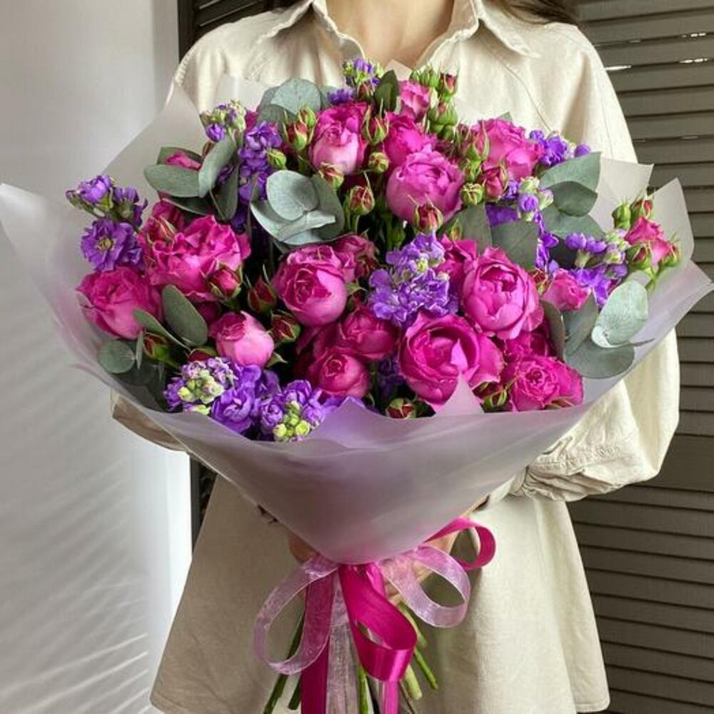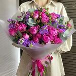 Kendinizi Büyüleyici Pembe Gül ve Matthiola Buketimizin büyüleyici güzelliğine bırakın. Bu çarpıcı aranjman, parlak pembe bahçe güllerinin zengin, kadifemsi yapraklarını narin, hoş kokulu menekşe matthiola ile zarif bir şekilde eşleştiriyor. Her duruma romantizm ve sofistike bir dokunuş katmak için mükemmel olan bu buket, zarafet ve çekiciliğin gerçek bir ifadesidir. Kutlamalar, yıldönümleri veya sadece birinin gününü aydınlatmak için ideal olan bu buketin canlı renkleri ve enfes kokusu kalıcı bir etki bırakacaktır.