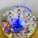 Cam Fanus İçerisinde Ayıcıklar ve Gul - Led Işıklı Tasarım