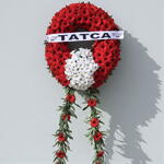 Bu muhteşem çelenk, özenle seçilmiş 60 adet kırmızı ve 50 adet beyaz Alman papatyasından hazırlanmıştır. Iki adet çelenk ayağına hoş bir yeşillik eklenerek el işçiliği ile süslenmiştir. Son olarak çelengi özelleştirmek için bir adet isimlikle beraber sunulmaktadır. Hem zarif hem de anlamlı bir seçimdir.